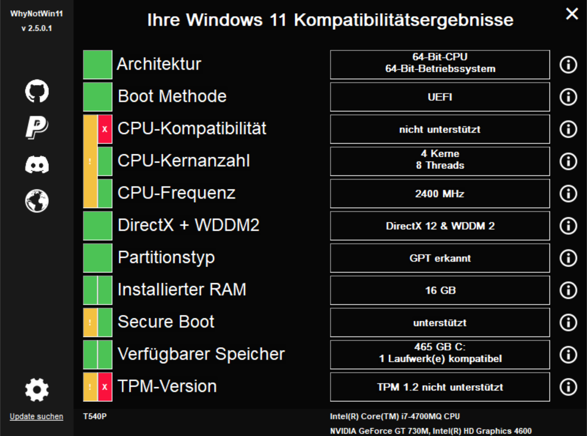 Hey, ich möchte mein altes Lenovo T540p frisch aufsetzen, weil Vieles nicht mehr geht u.a. Win 10 Updates die ständig fehl schlagen. WhynotWin11 hat so seine Gründe, u.a. die alte CPU. Was meint ihr? Trotzdem installieren, oder Win 10 wieder neu drauf machen und hoffen, dass danach wieder alles geht?