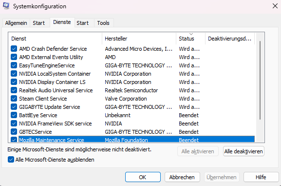 Ausführen: msconfig - Reiter "Dienste" - Alle Microsoft-Dienste ausblenden ?