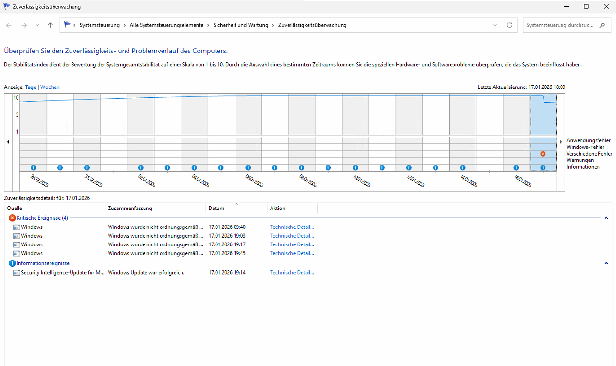 Hallo zusammen, ich hoffe ihr könnt mir helfen. Folgendes Problem Win 11 freezed bei mir nach ein paar Sekunden/Minuten nach dem Booten. Im Abgesicherten Modus läuft es jedoch ohne Probleme. Das Problem tauchte Anfang Dezember 25 auf. Der PC ist ein älterer Medion PC. Win 11 ist darauf nicht freigegeben jedoch konnte ich es mit den Anleitungen von diesem Forum installieren. Der PC lief eigentlich immer sehr zuverlässig und ich musste ihn nie neu aufsetzen in den letzten Jahren.