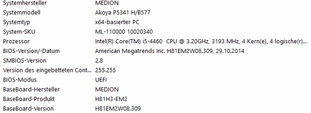 Was hab ich bisher gemacht zuerst habe ich versucht im abgesicherten Modus das System zu retten hab einige Checks über die Kommandozeile ausgeführt alles ohne Erfolg. Hab versucht die Grafikkarte zu deaktivieren ob diese eventuell Fehlerhaft ist das brachte aber auch nichts. Ich habe dann gelesen im Internet das die Batterie am Medion Motherboard eventuell Probleme machen kann somit habe ich diese erneuert hat aber keine Verbesserung gebracht.