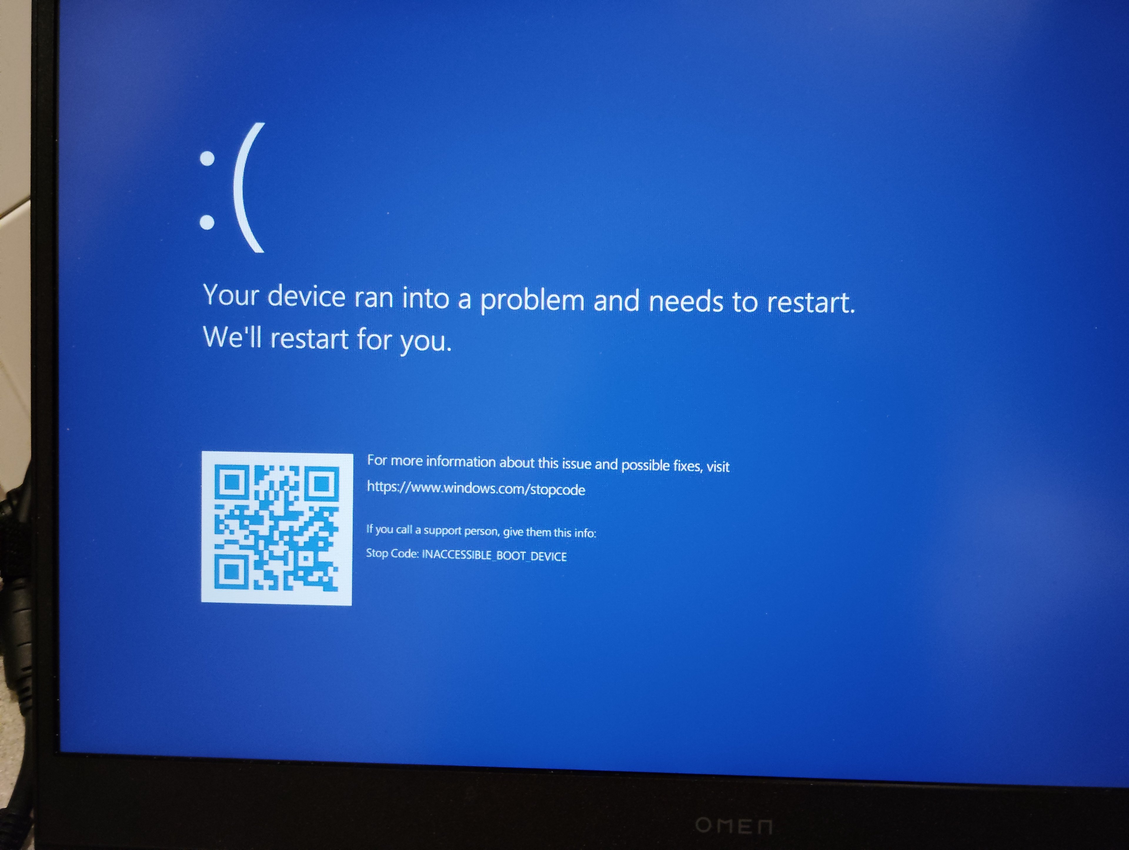 Er startet während der Win 11 Installation ja mehrmals neu und direkt nach dem ersten Neustart, nachdem er die Daten von Stick auf die SSD kopiert hat meldet er, dass er keine SSD findet um weiter zu installieren. "inaccessible boot device"