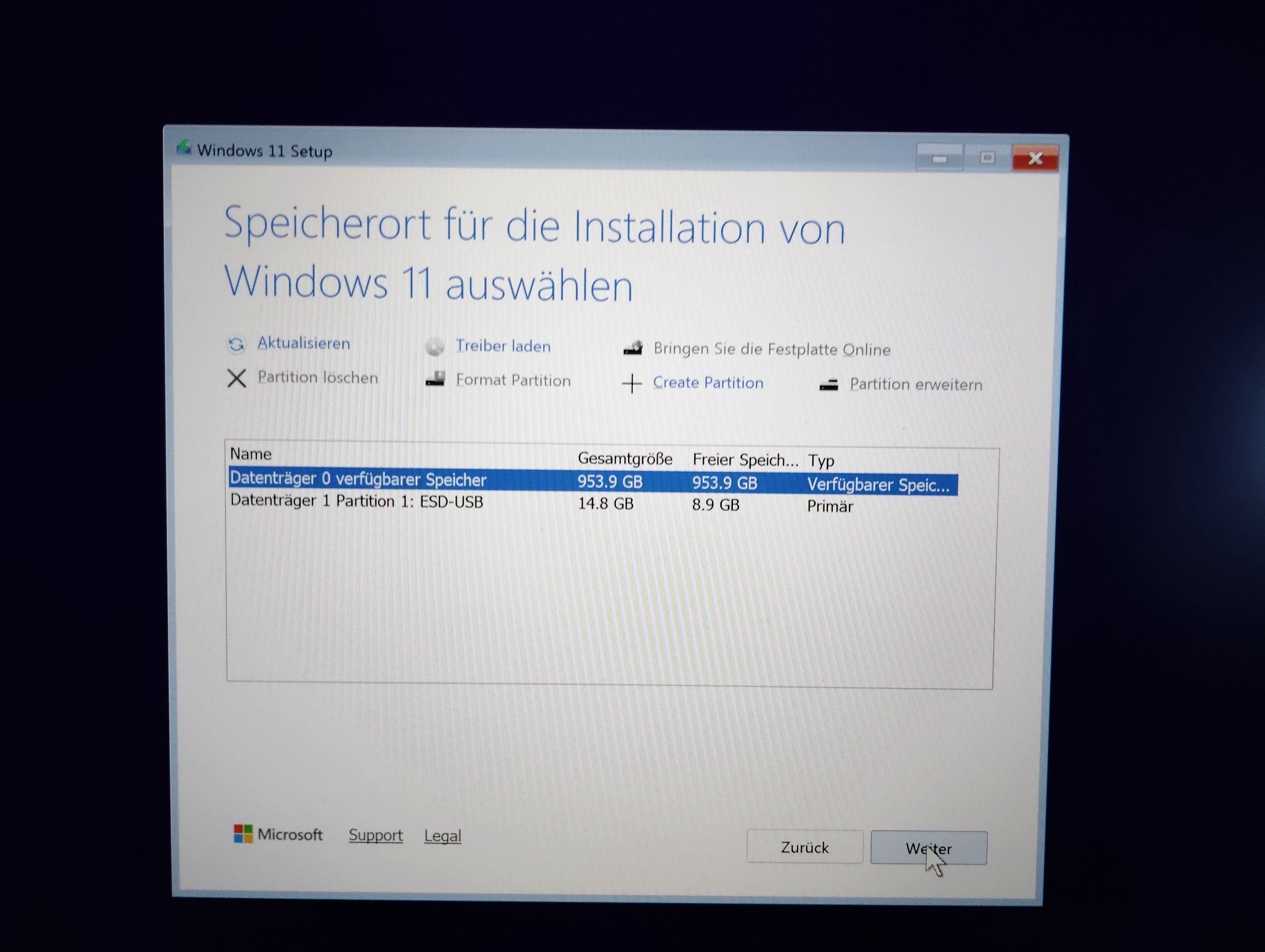 Win 11 installiert nicht weiter Blue Screen *inaccessible boot device*