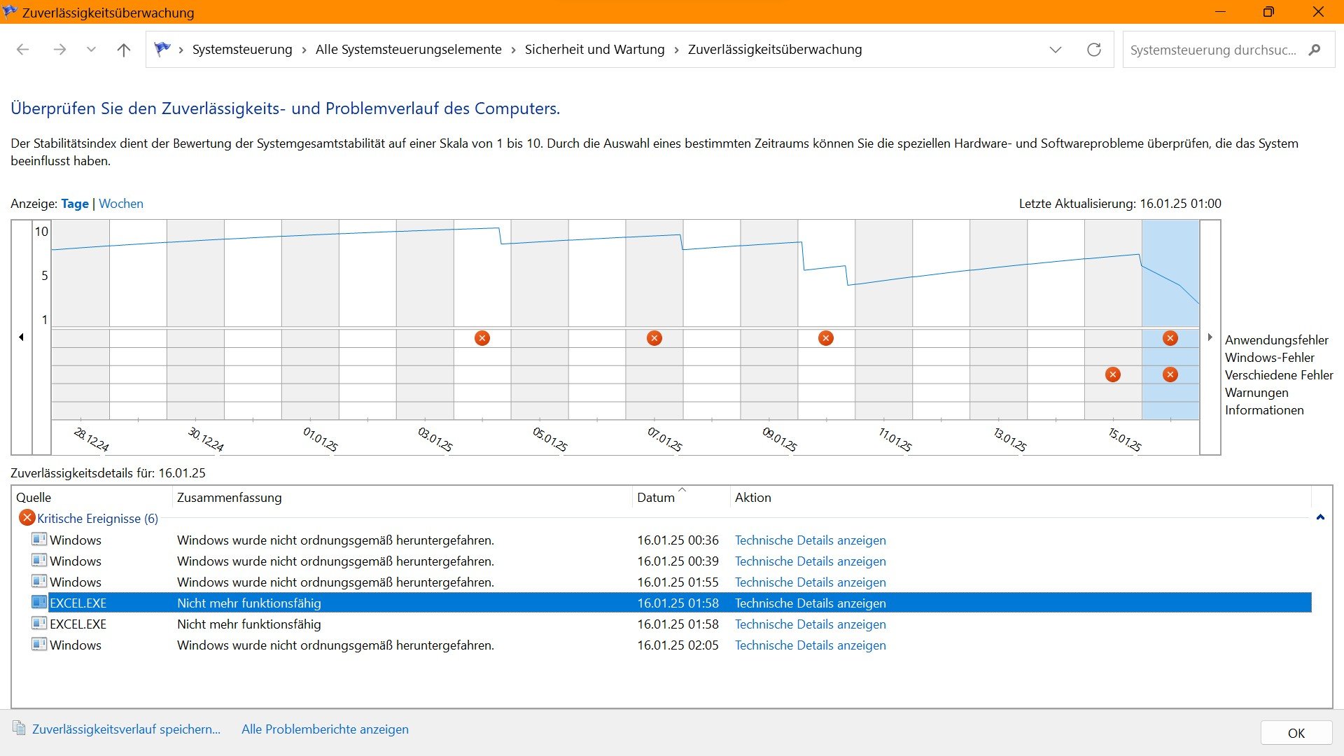 Win 11 Sagt : Ereignis 6008 unerwartet heruntergefahren