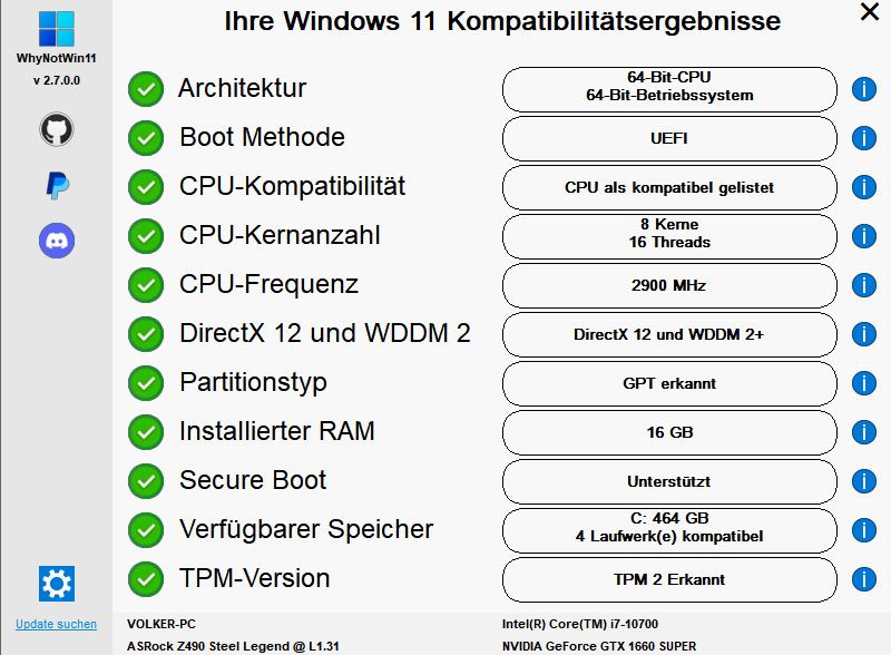 Whynotwin11 zeigt mir alles grün an.