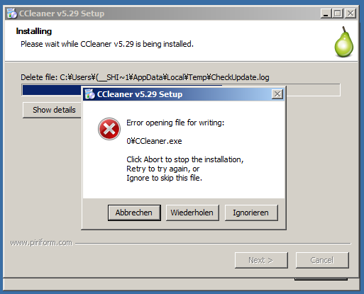 Win 7 64bit = CCleaner laesst sich nicht Installieren (vieles schon getestet)