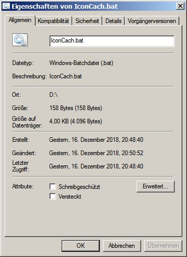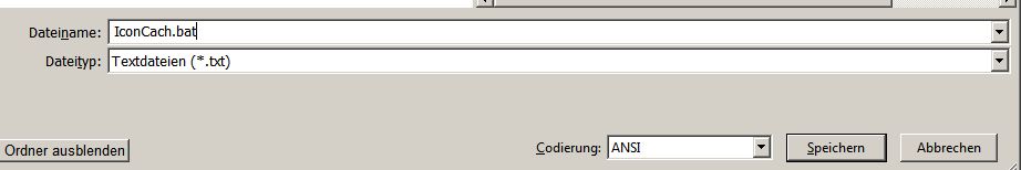 "Mit dem Editor folgende Zeilen als IconCach.bat abspeichern: @Echo off