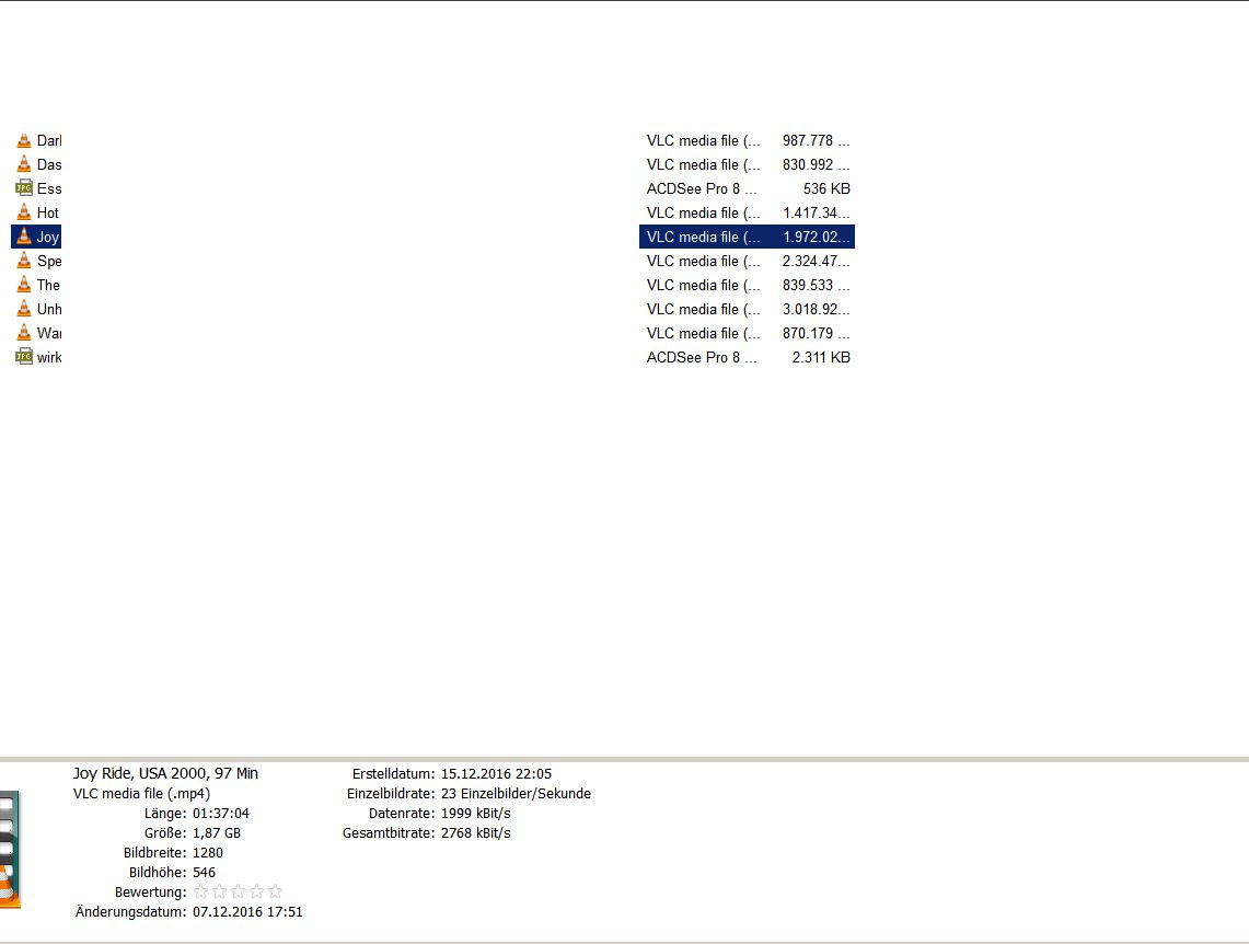 OK jetzt habe ich kapiert was Du meinst. Dein Problem liegt darin, daß wenn Du die Ansicht Details auswählst, die einzelnen Spalten zu schmal sind um den gesamten Feldinhalt darzustellen, und er abgeschnitten wird, richtig?