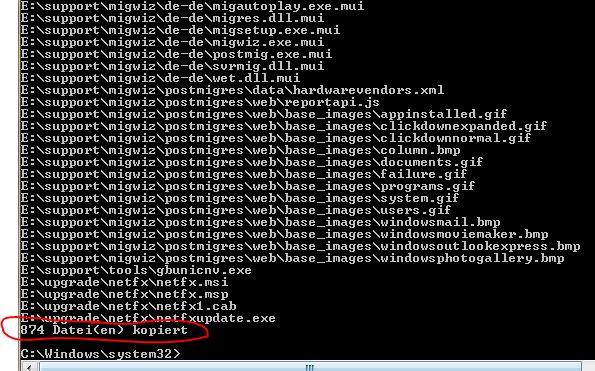 Die DVD auf den Stick kopieren. Wir haben C:\Windows\system32> im "DOS"-Fenster. Nun kopiert man mit den richtigen Laufwerksbuchstaben mittels xcopy alles auf den Stick. Es kann lange dauern!