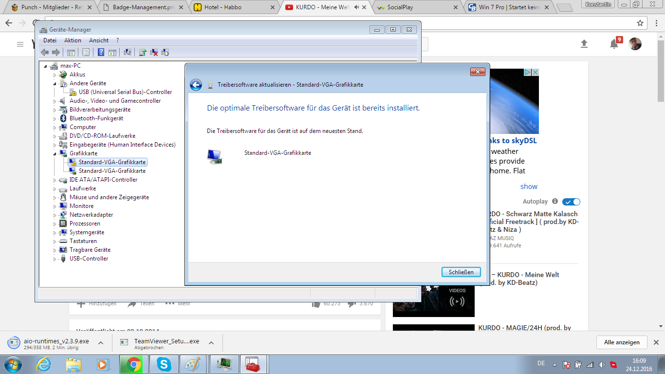 Verstehst du mich nicht ? Standard Grafikkarte 2 installiert sich ja aber geht trzd nicht USB etc findet er nicht