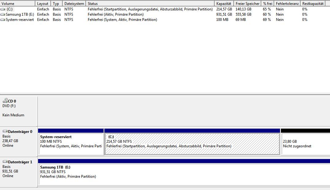 Kurz Google gefragt und ich verstehe das so als ob meine Datenträgerverwaltung Probleme mach (siehe Screen)