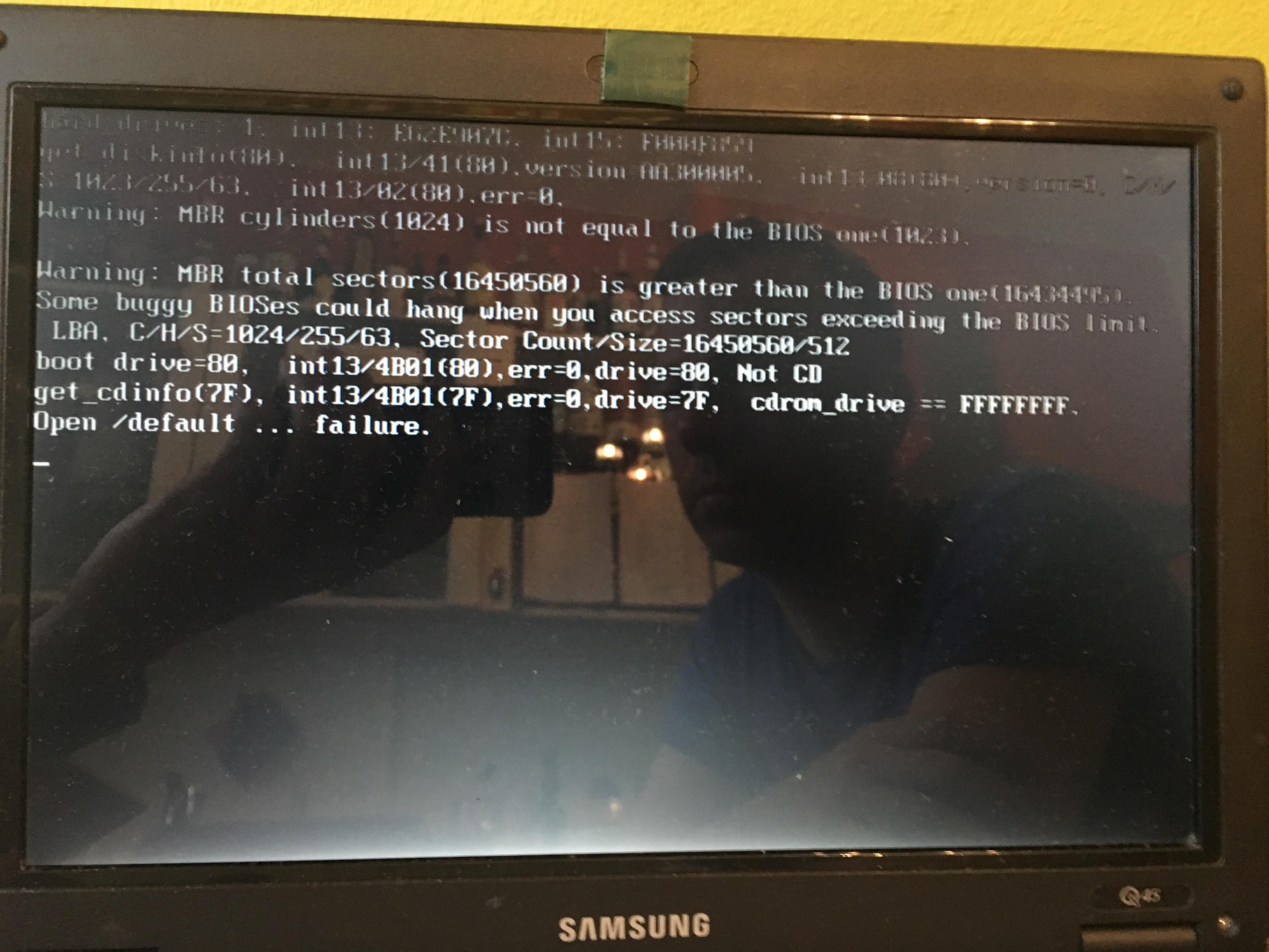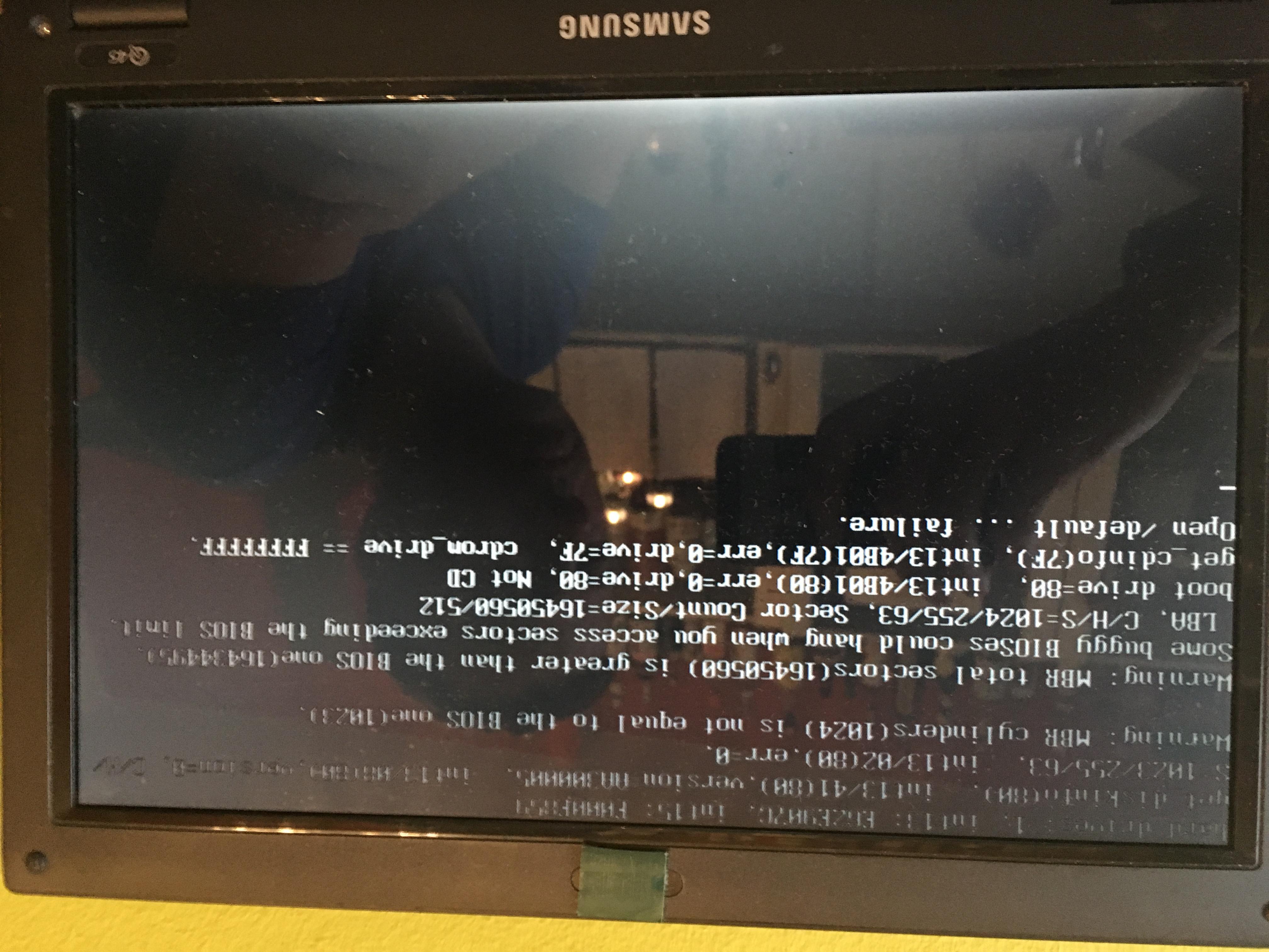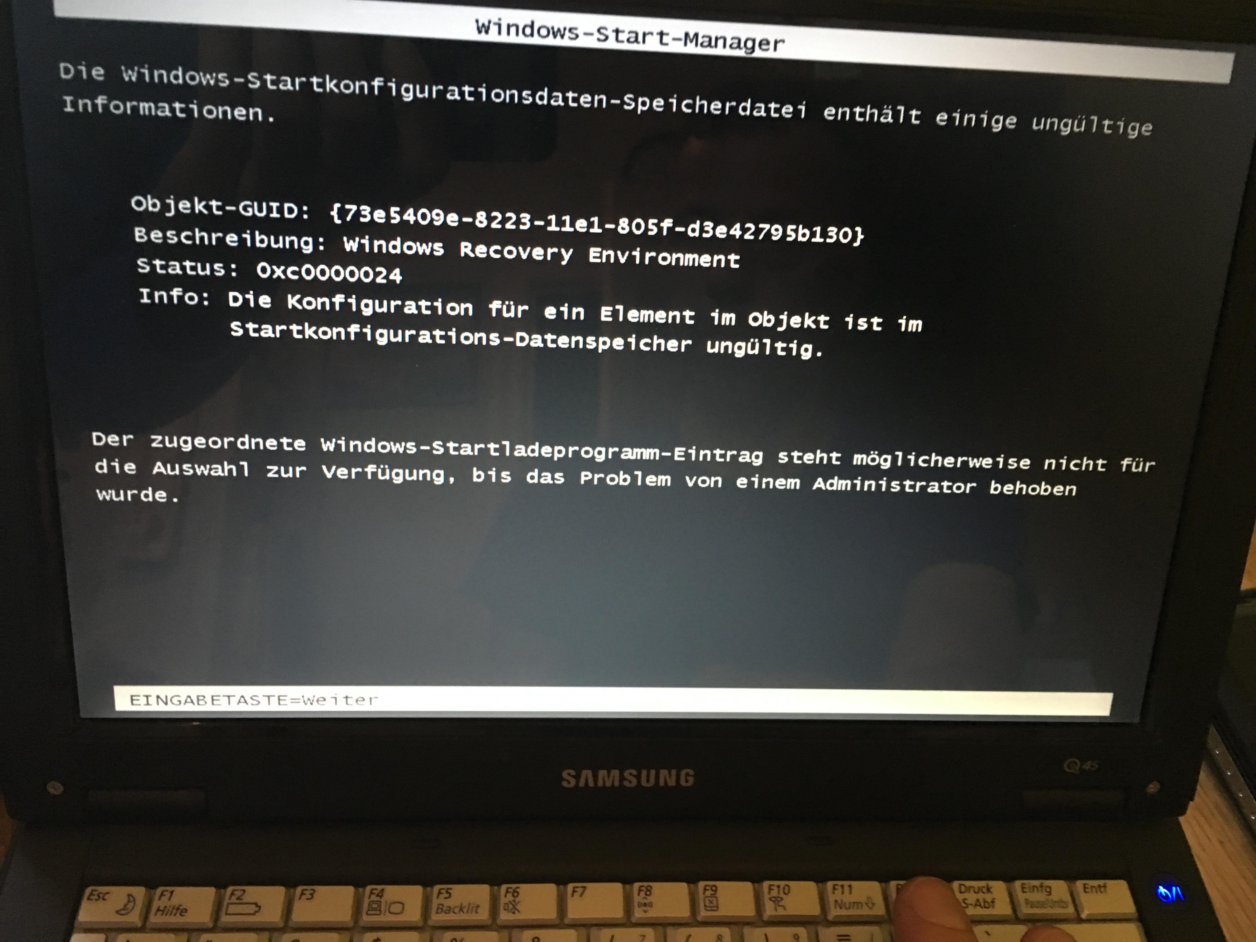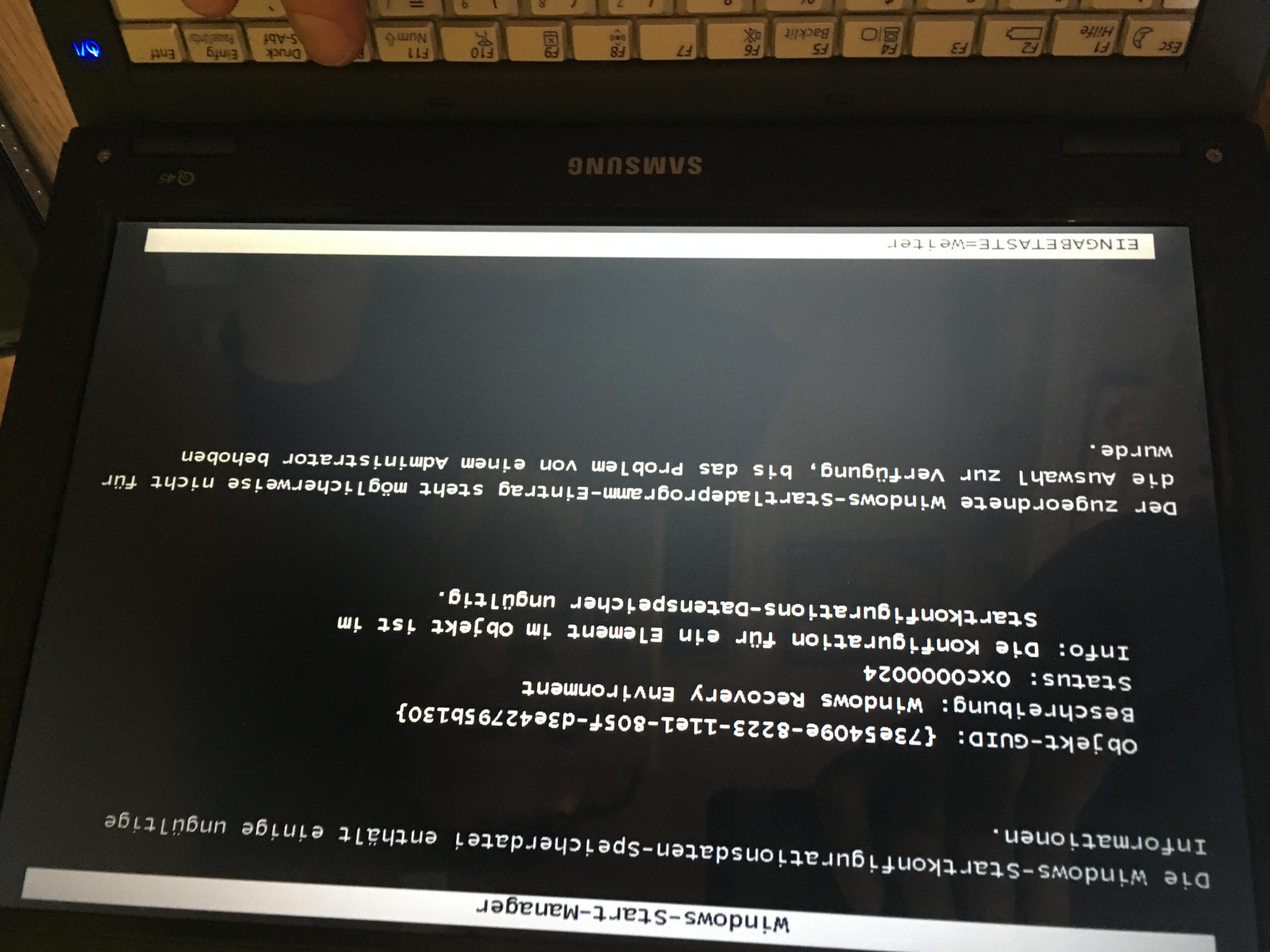 - Versucht die HD1 wieder im Original-Notebook zu betreiben. Jetzt mit folgender Fehlermeldung nach der PW-Eingabe: