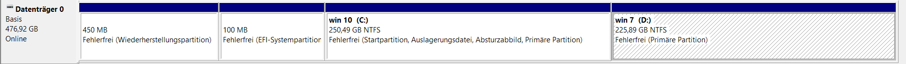 neuerdings ist eine 500-er SSD verbaut. Nachdem dort alles ok war, habe ich die SSD geteilt in zwei etwa gleich große Partitionen. Auf die zweite wollte ich nun WIN 7 installieren. Das hat auch geklappt, bis zum Neustart. Der wurde verweigert, ich bekam einen schwarzen Bildschirm mit den Wahlmöglichkeiten "im abgesicherten Modus starten" - oder "PC normal starten" usw. Nach dem Neustart wurde mir das Fenster des Bootladers mit der Wahl WIN 10 und WIN 7 angezeigt. WIN 10 startet einwandfrei, bei WIN 7 wird mir wieder der schwarze Bildschirm angezeigt. Die hier aufgeführten Optionen führen zu nichts.