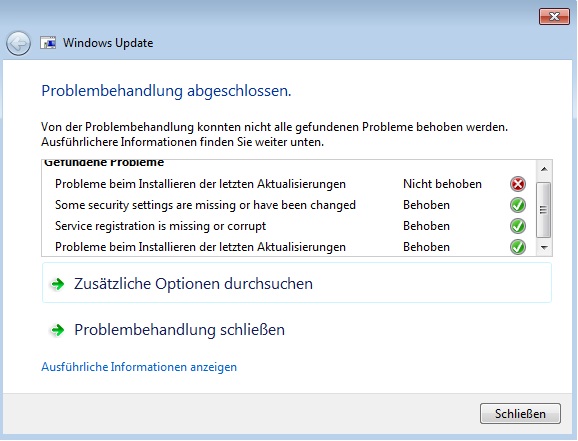 - WindowsUpdateDiagnostic.diagcab: findet Probleme und behebt diese auch, aber es werden immer noch keine Updates gefunden (siehe Bild 3)