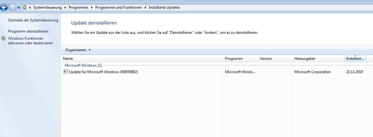 Installierte Updates: Nur eines Microsoft Windows (KB976902) - lässt sich nicht entfernen! (siehe Bild 4)