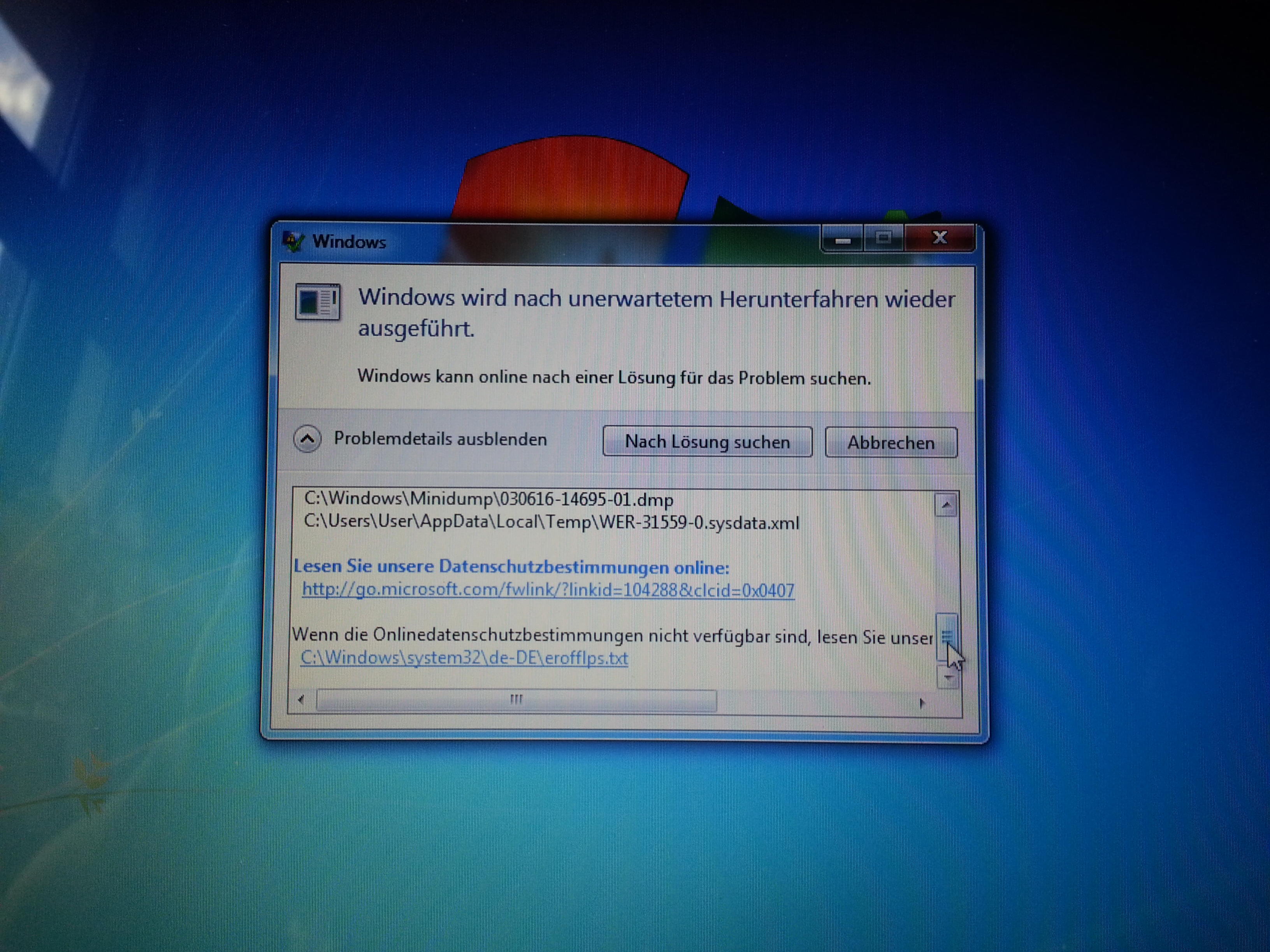 Was sagt mir dieser Bluescreen? Kam heute schon 3x.