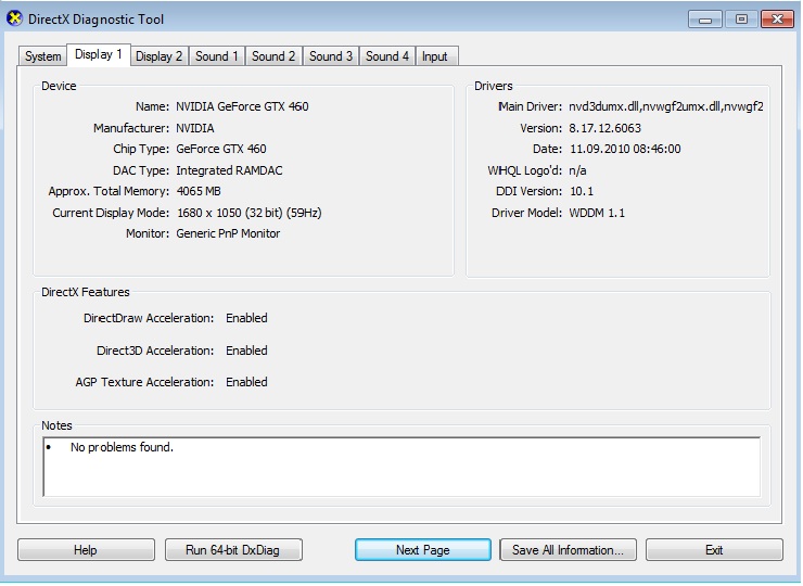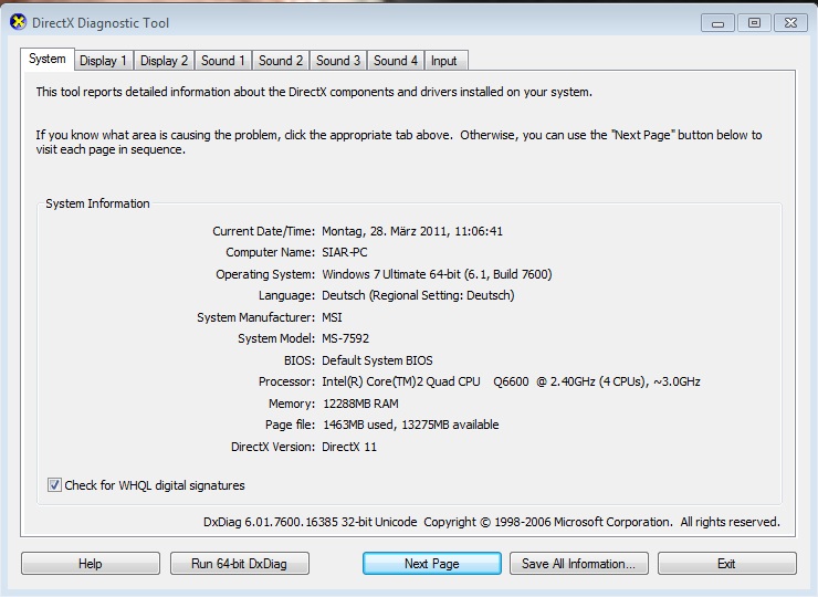 Windows 7 x64 Build 7600 hingegen zeigt mir hingegen an, ich hätte 12 GB Ram und auch 4 GB Video Memory.