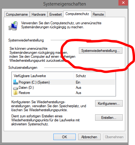 Wenn der Schutz aktiviert ist, müssten auch Wiederherstellungspunkte vorhanden sein ! Da darf man sich doch wohl noch drüber wundern !