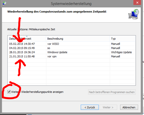 Drehen wir uns denn da jetzt nicht i m Kreis ? Ich sagte Dir doch, dass Windows Wiederherstellungspunkte automatisch angelegt hat !