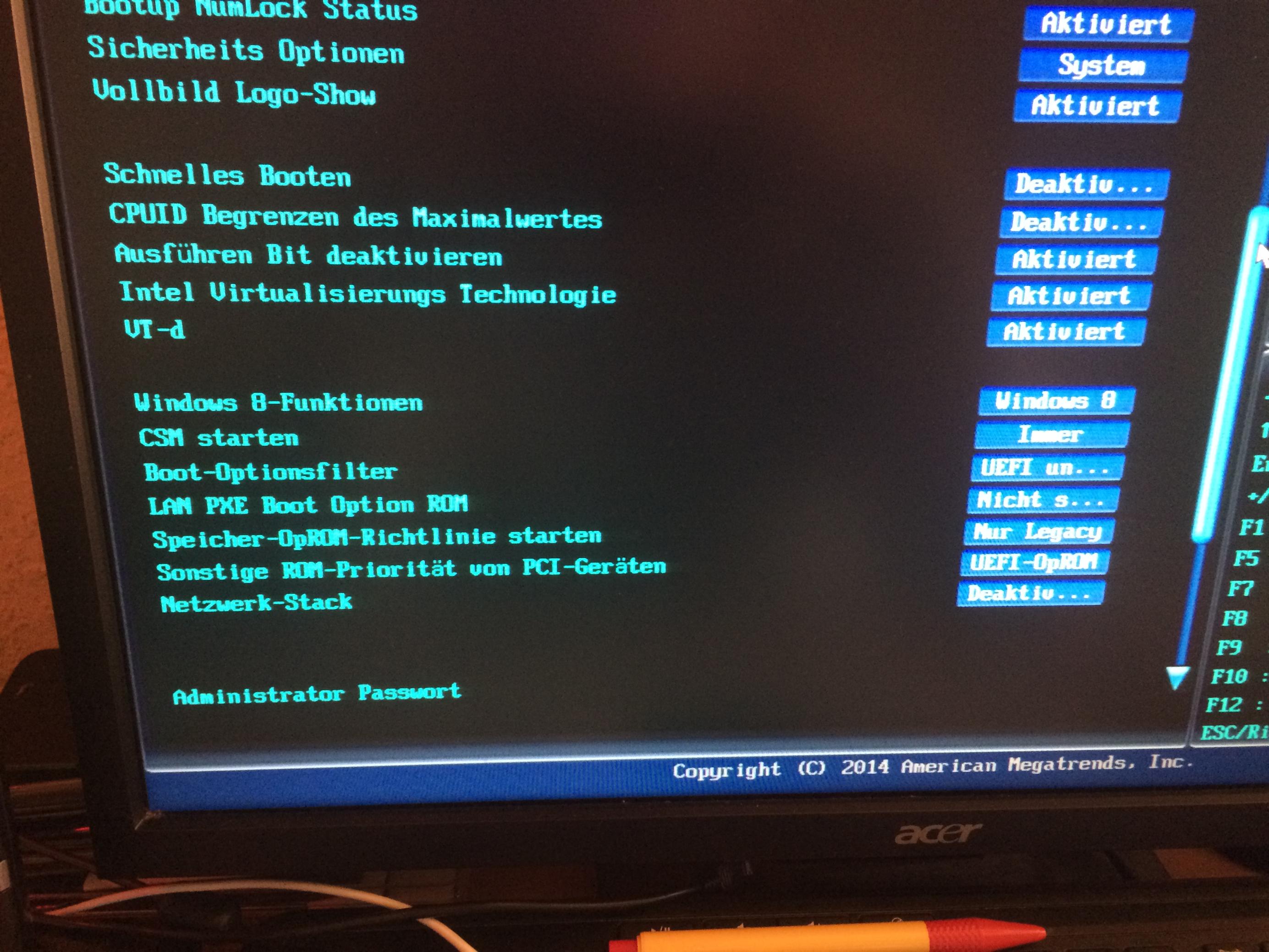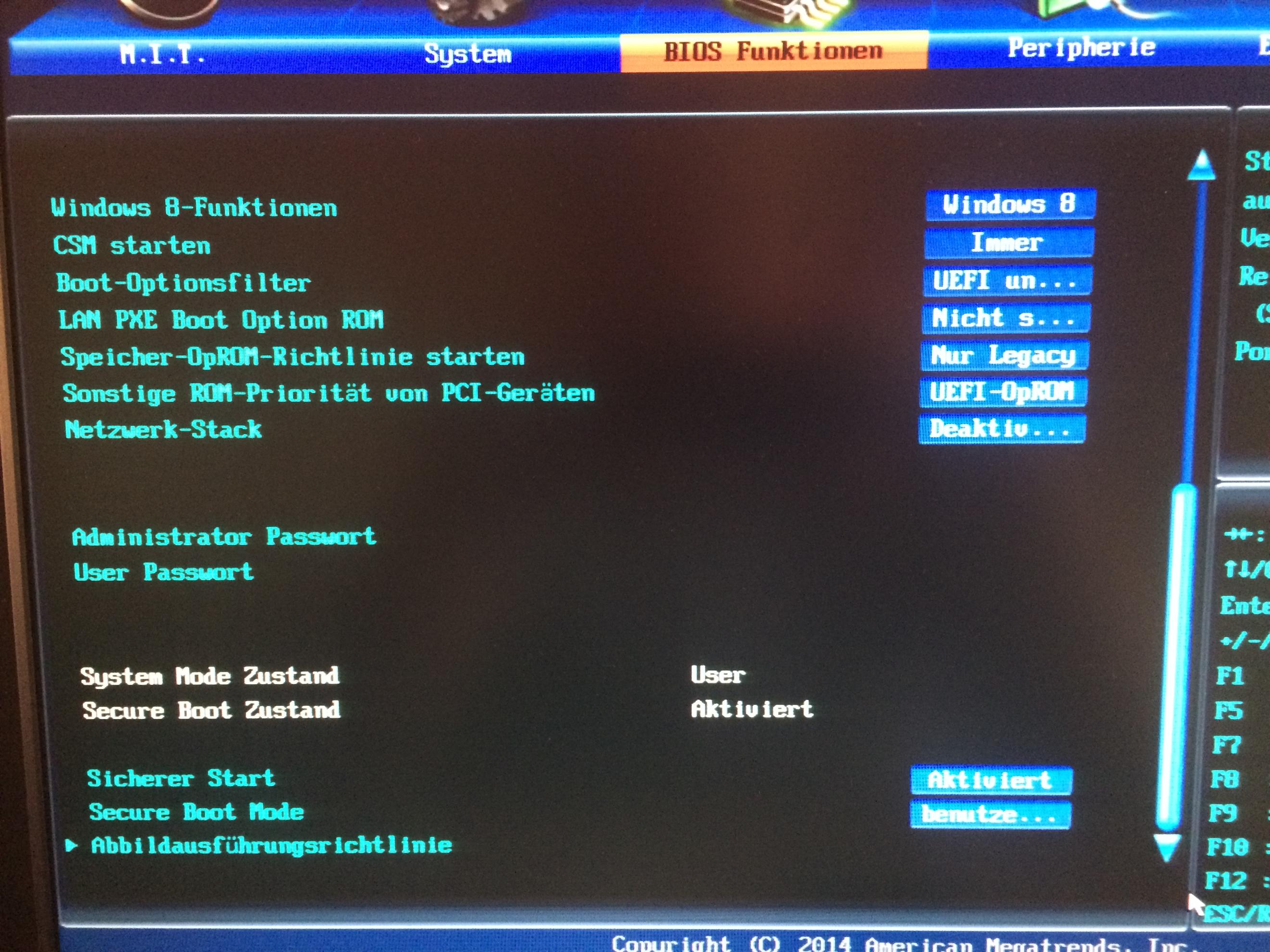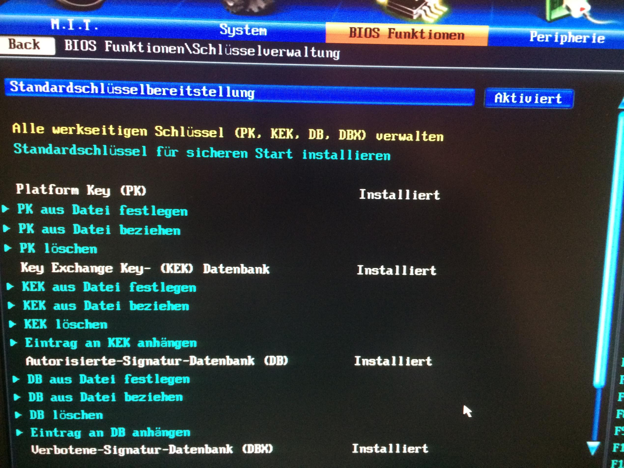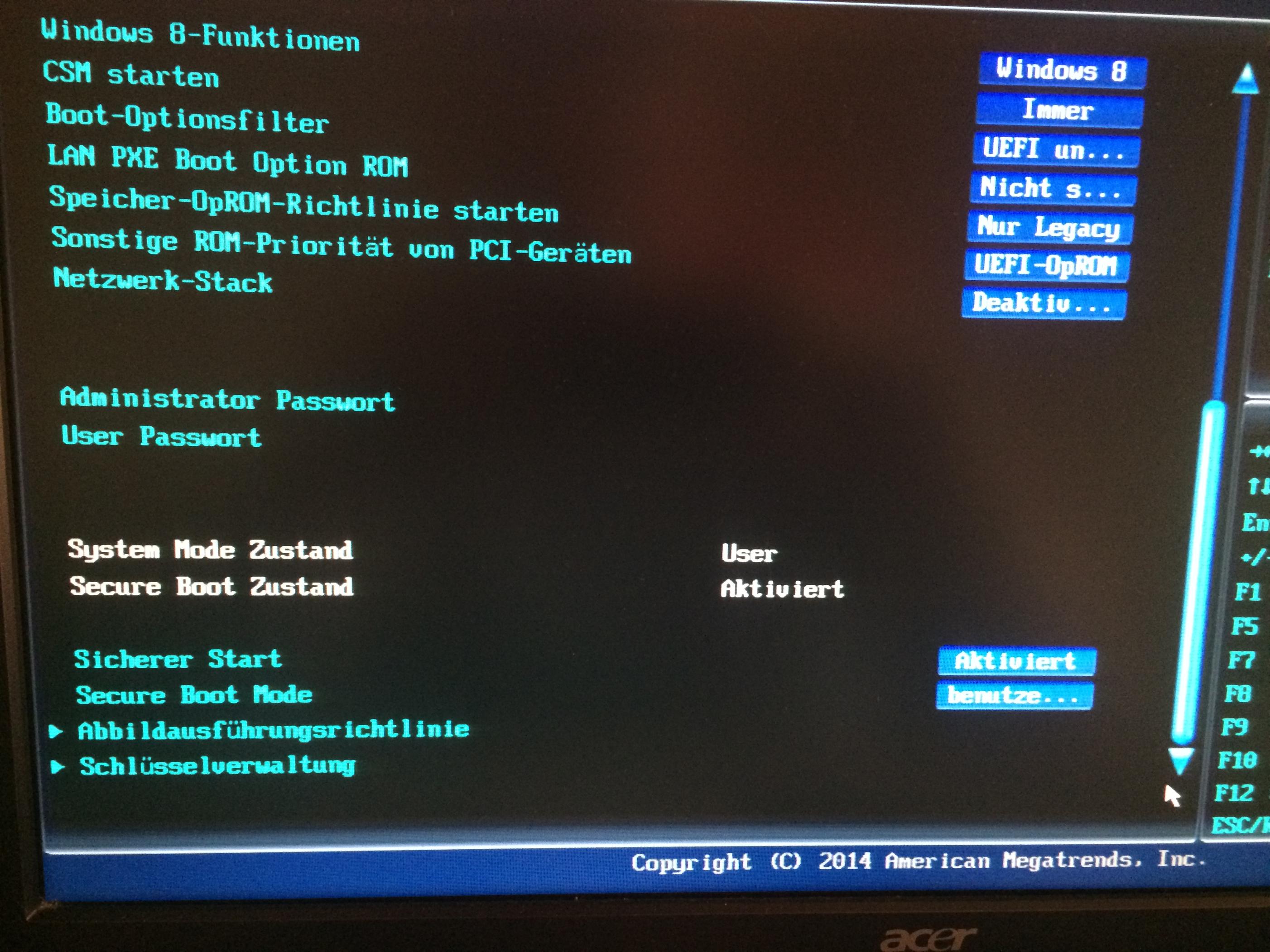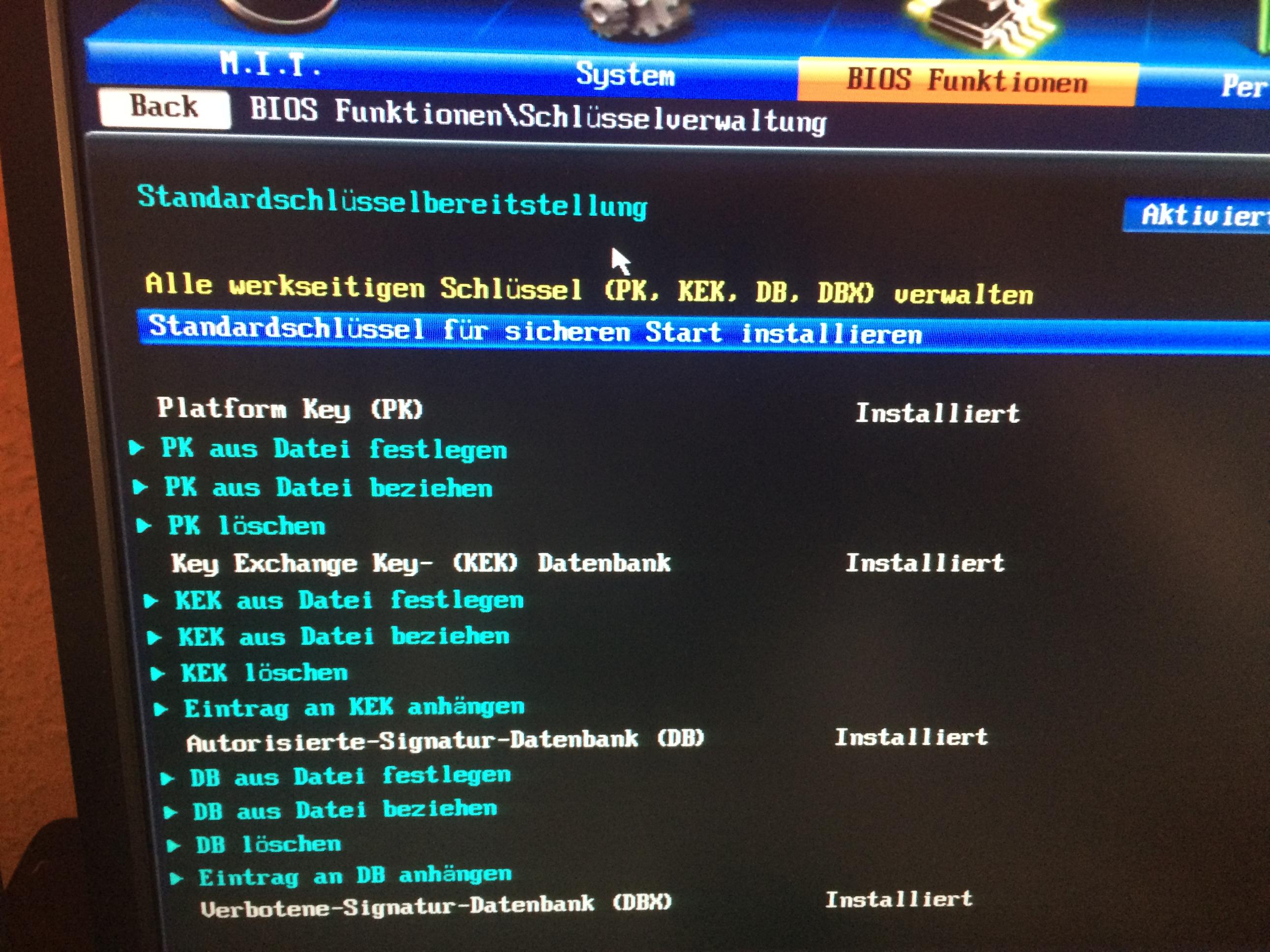 1. Im UEFI BIOS muss Secure boot deaktiviert werden. Muss da auch bei der Betriebssystemauswahl was geändert werden? Oder sonst noch Einstellungen?