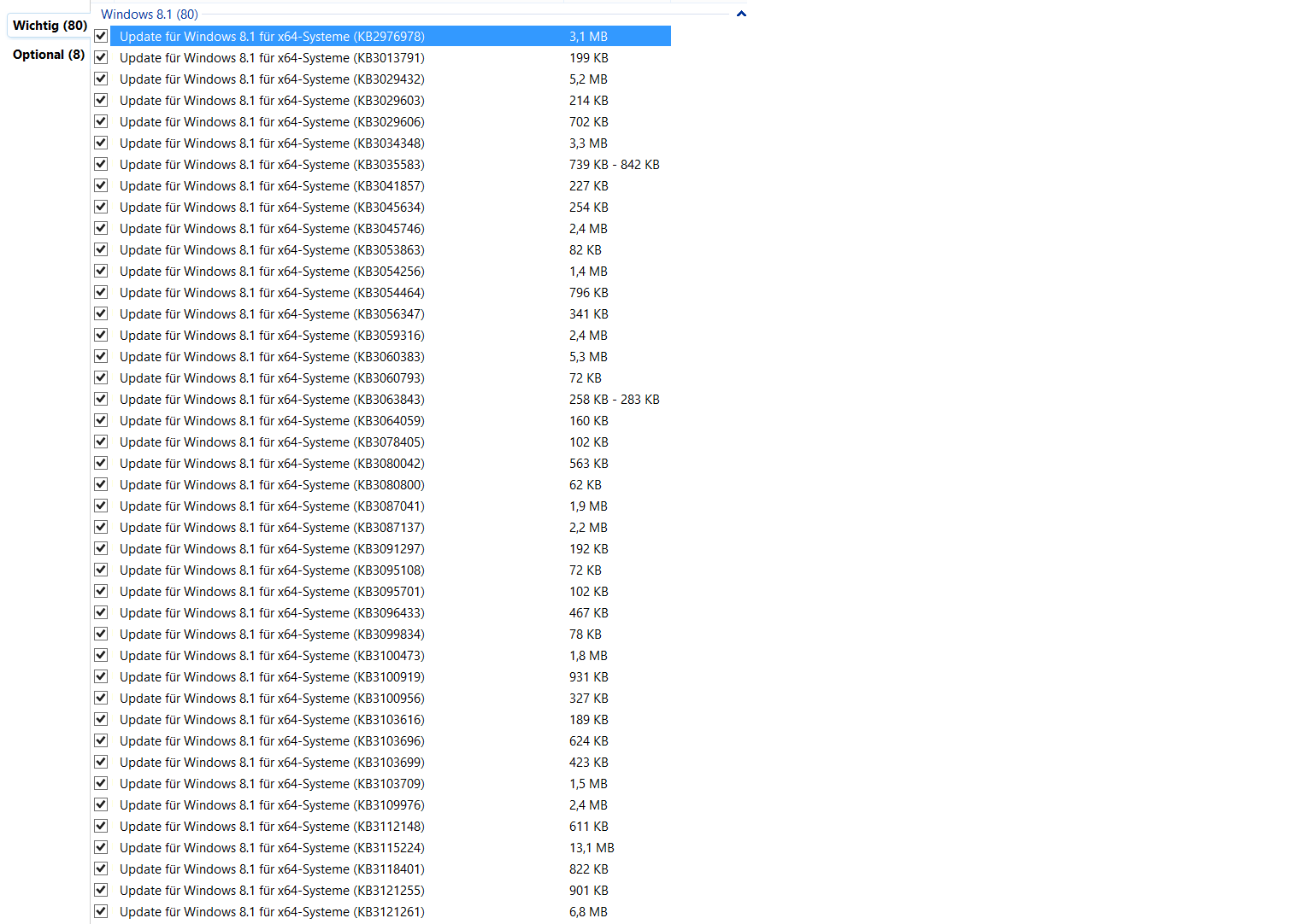 Habe jetzt leider noch ein kleines Problem jetzt sind 80 wichtige + 8 Optionale Windows Updates verfügbar!