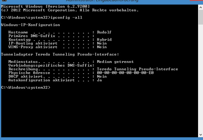 Den Windows 8 Computer mit der "fremden" Netzwerkkarte an den LAN-Anschluss des anderen Computer angesteckt: Kein Internet
