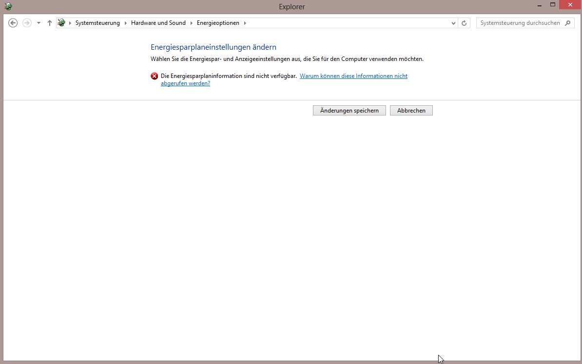 Ich habe mir die Energieeinstellungen genauer angesehen doch wenn ich auf Energiesparmodus ändern klicke kommt die Meldung "Die Energiesparplaninformationen sind nicht verfügbar".