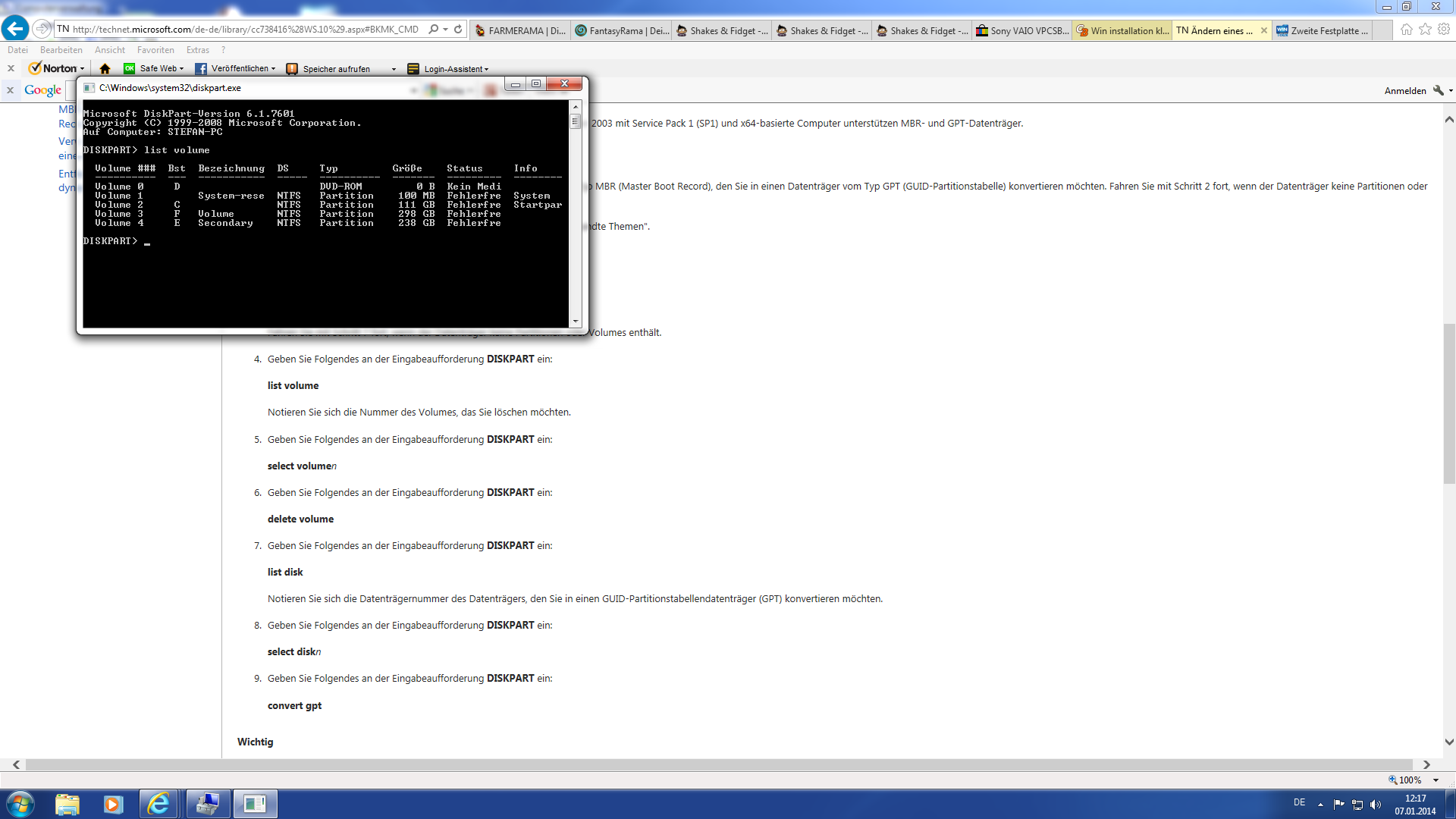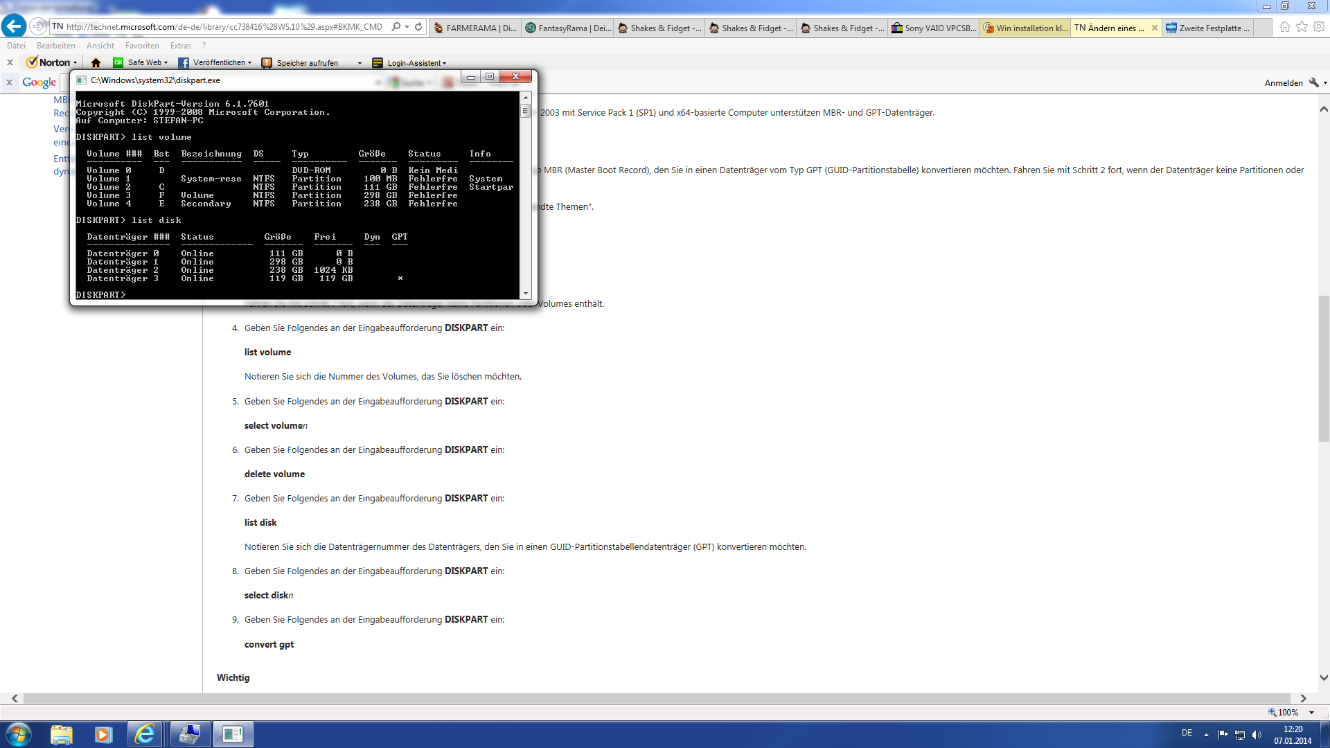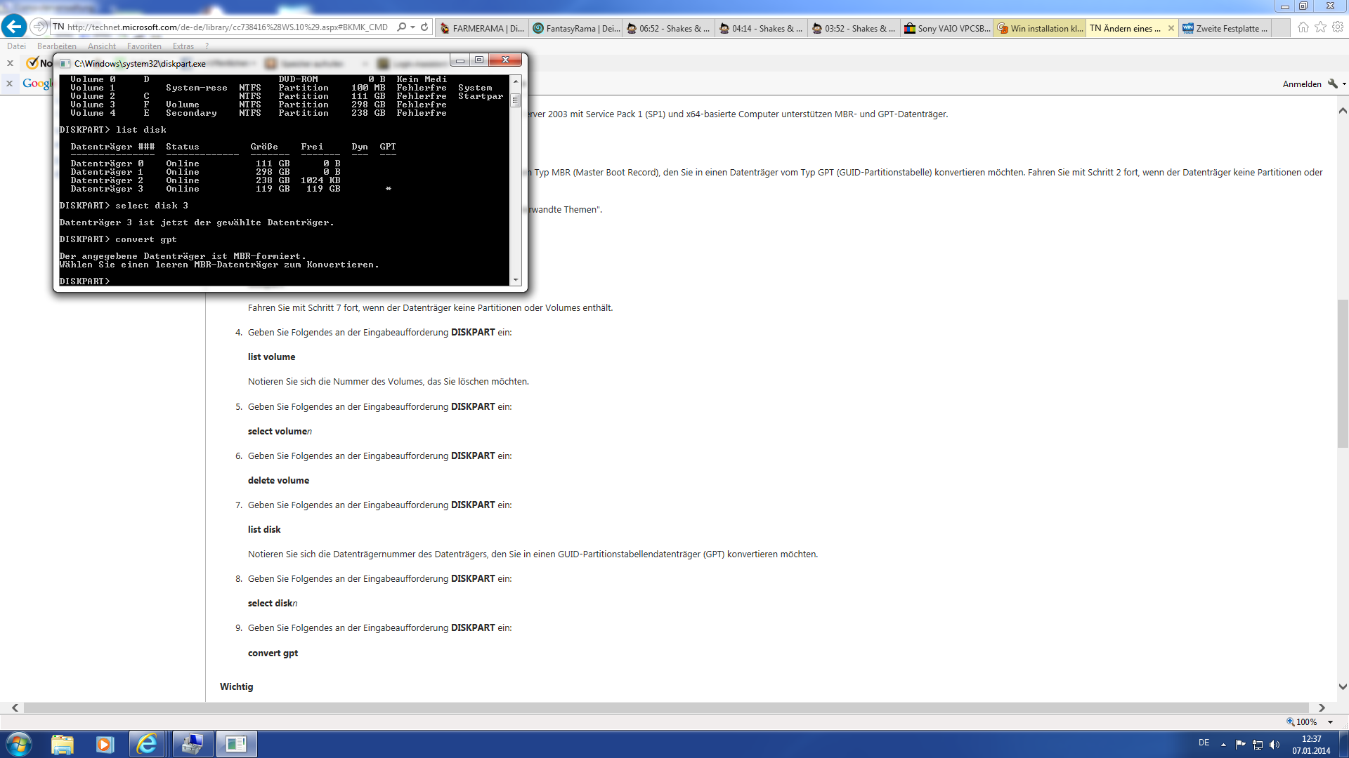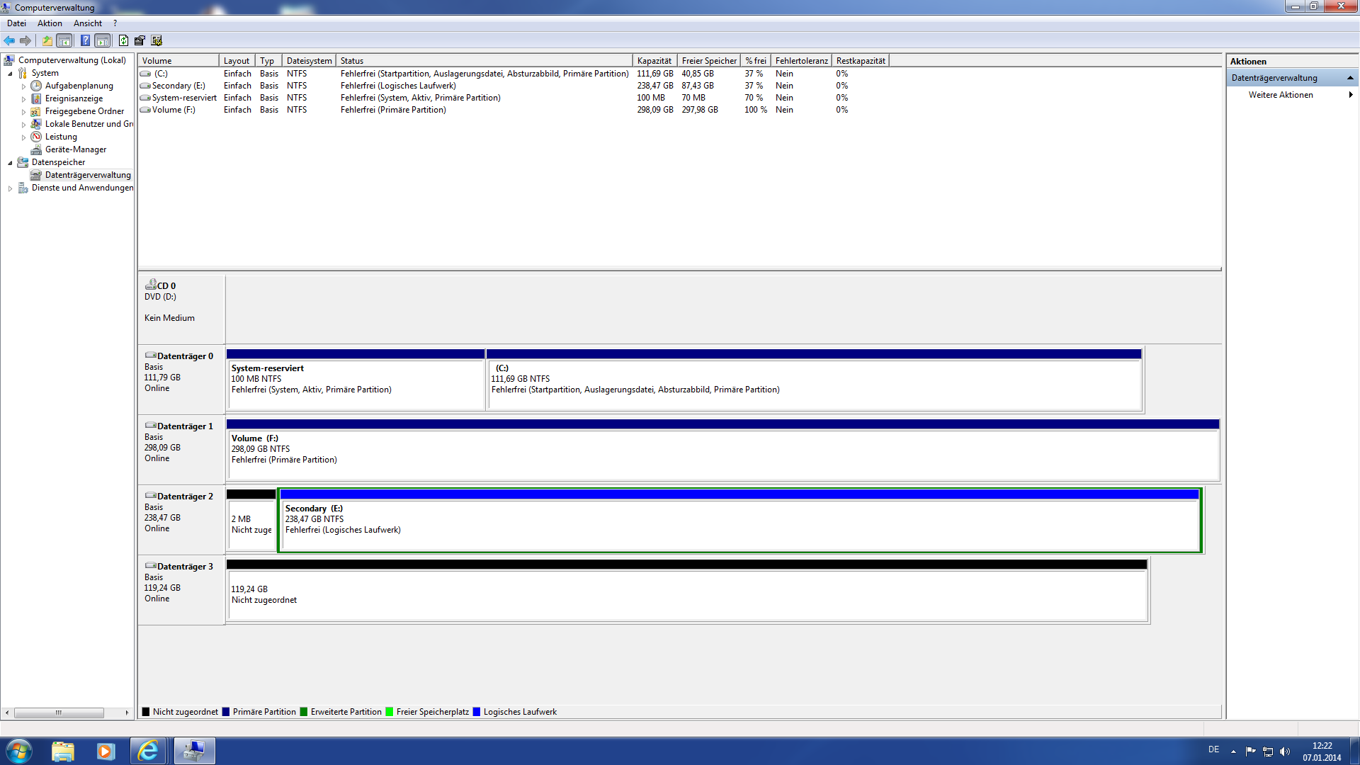 Wie man sieht, die obigen Screen entstanden mit gelöschter Partition (nicht zugewiesen)