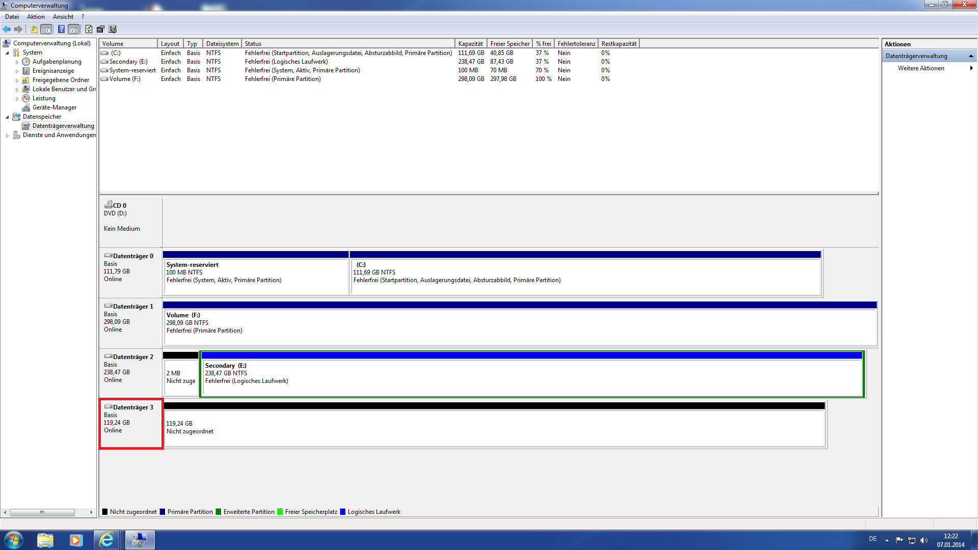 Ohne Partition wird mir die SSD (119GB) nicht angezeigt.
