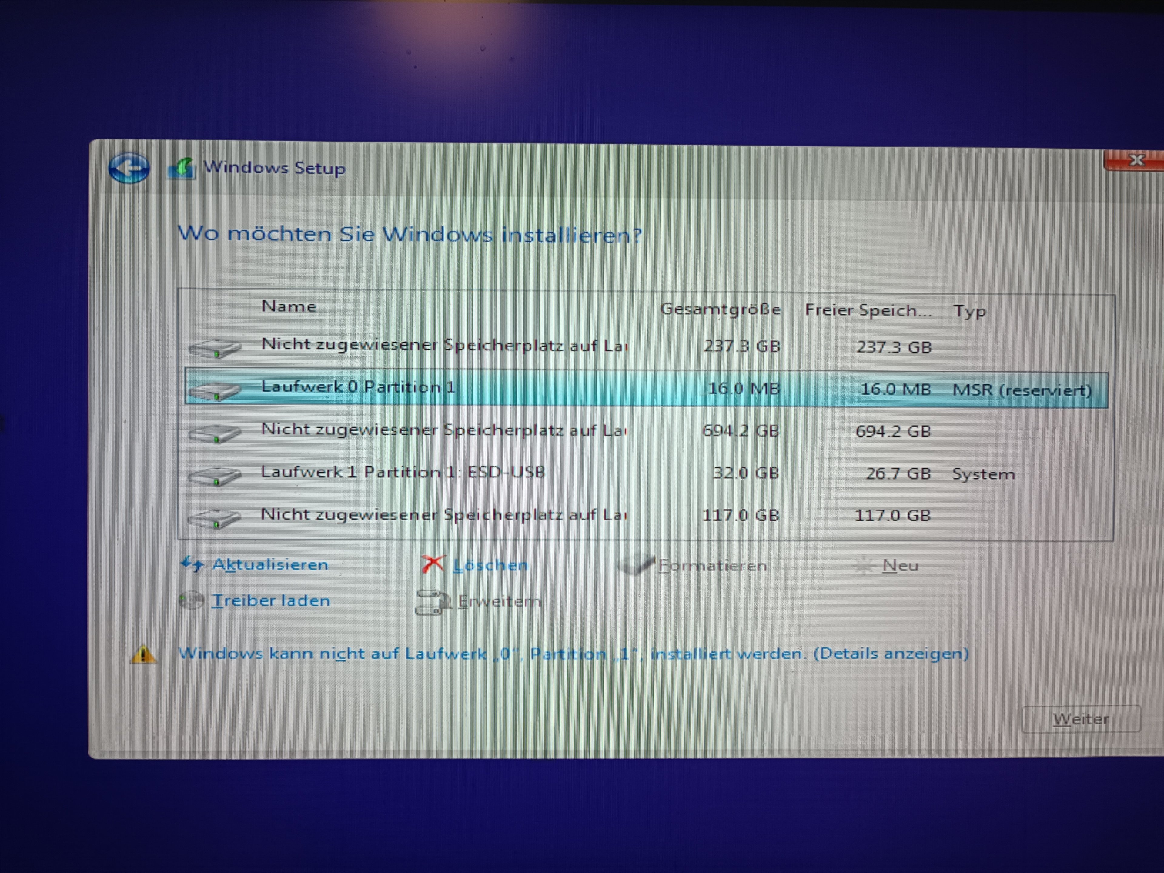 Dann kannst wählen, auf welcher der nicht zugewiesen Partitionen du installieren möchtest.