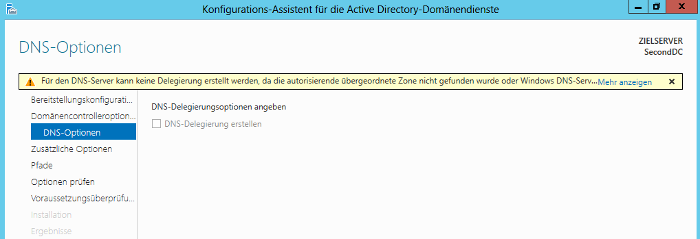 Jetzt habe ich den Assistenten zum erstellen einer Domäne ausgeführt, doch da mault er rum: