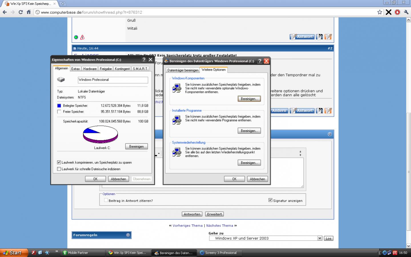 Bei meinem Win XP Rechner bekomme ich seit gestern die Fehlermeldung, dass kein Speicherplatz mehr auf C: verfügbar ist.