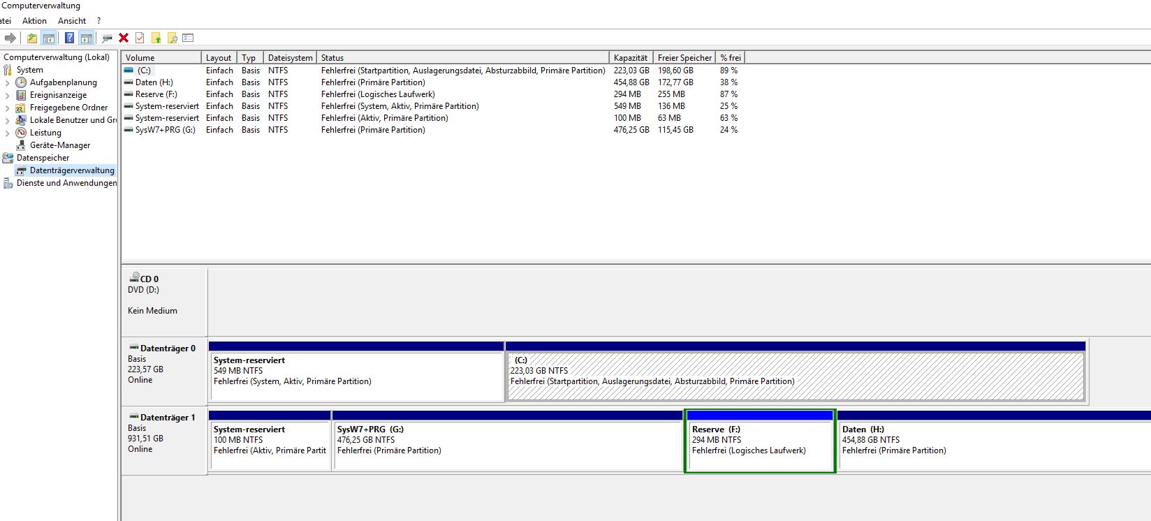 Dann bootete das Win7 System nicht mehr und der Zugriff von Win10 ssd ging nicht mehr auf Systempartition des Win7 Systems G:.