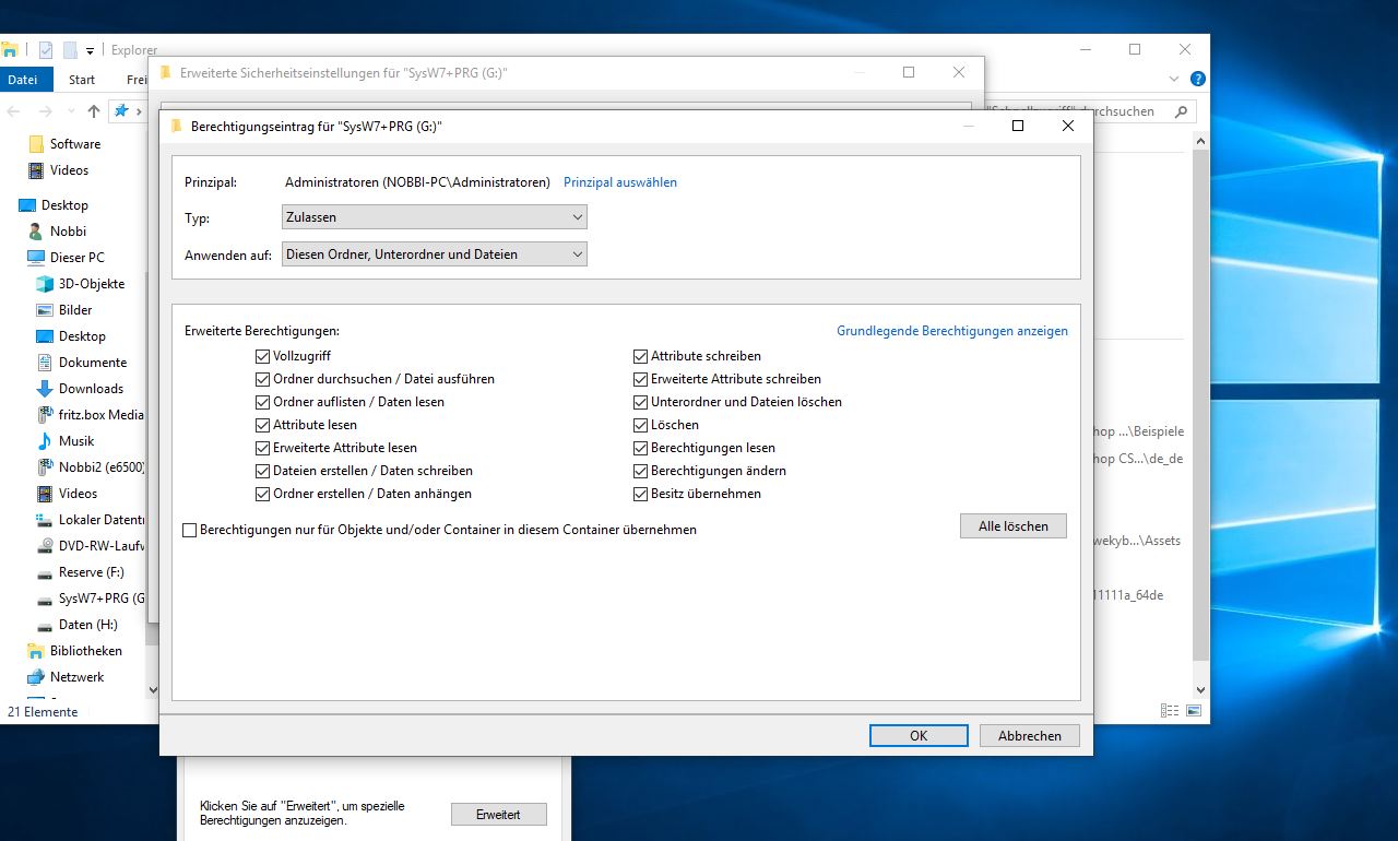 Liegt das an den Sicherheitsberechtigungen? Die habe ich zwischenzeitlich jetzt auch neu gesetzt für unter Ordner.