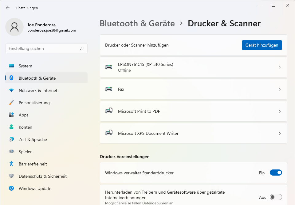 mir ist eben aufgefallen, dass unter Win10 Pro unter "Drucker und Scanner" bzw. "Geräte und Drucker" mein Canon TS8350 nicht mehr angezeigt wird. Im Gerätemanager ist er vorhanden, wenn ich aus Anwendungen drucken will, ist er auch da. Ich habe ihn bereits deinstalliert und neu installiert - kein Erfolg. Der Drucker ist direkt per USB angeschlossen und die Verbindung funktioniert ja auch.