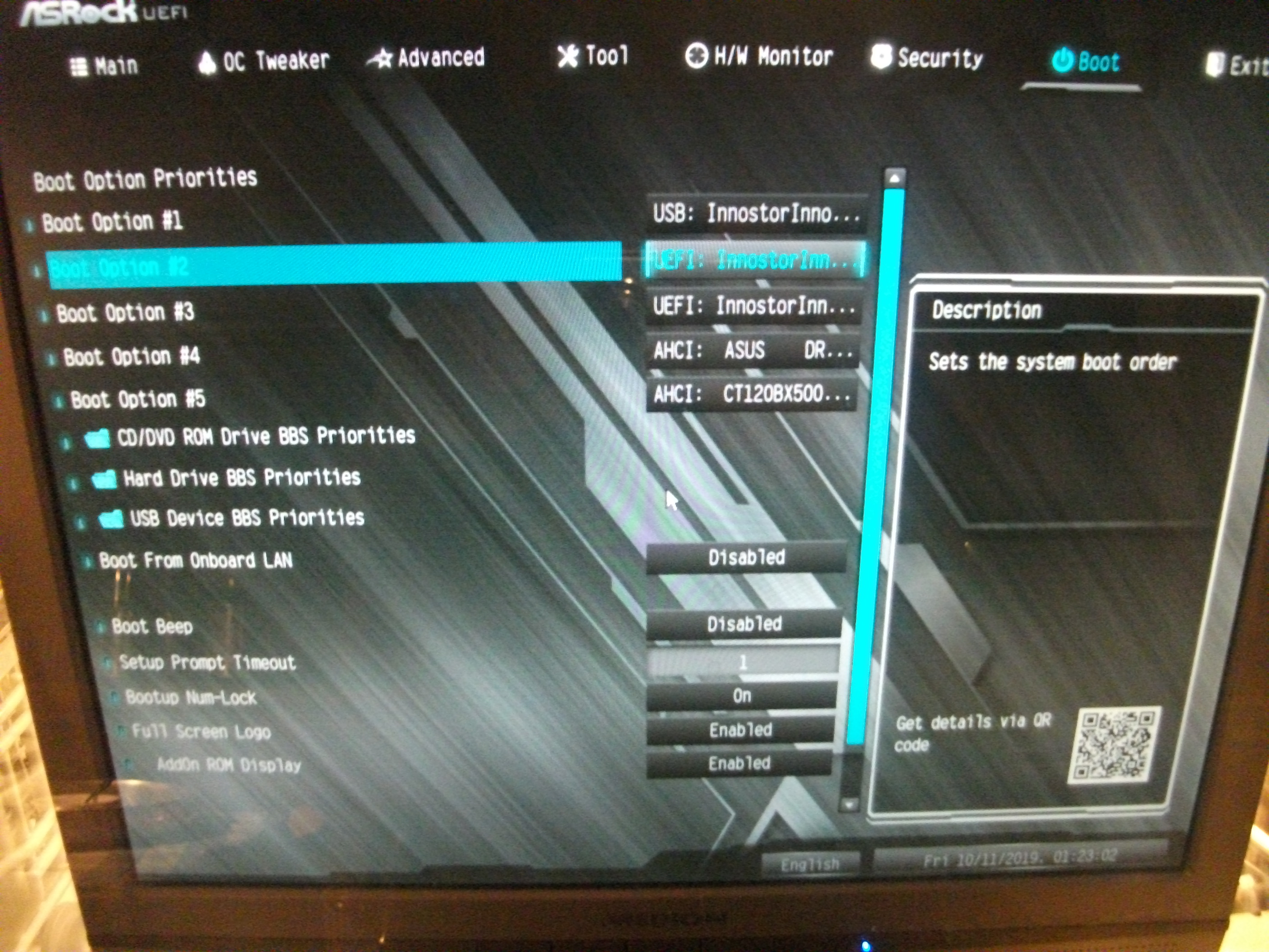 Du müsstest jetzt eigtl. booten können von Boot Option "2" oder eben "3".