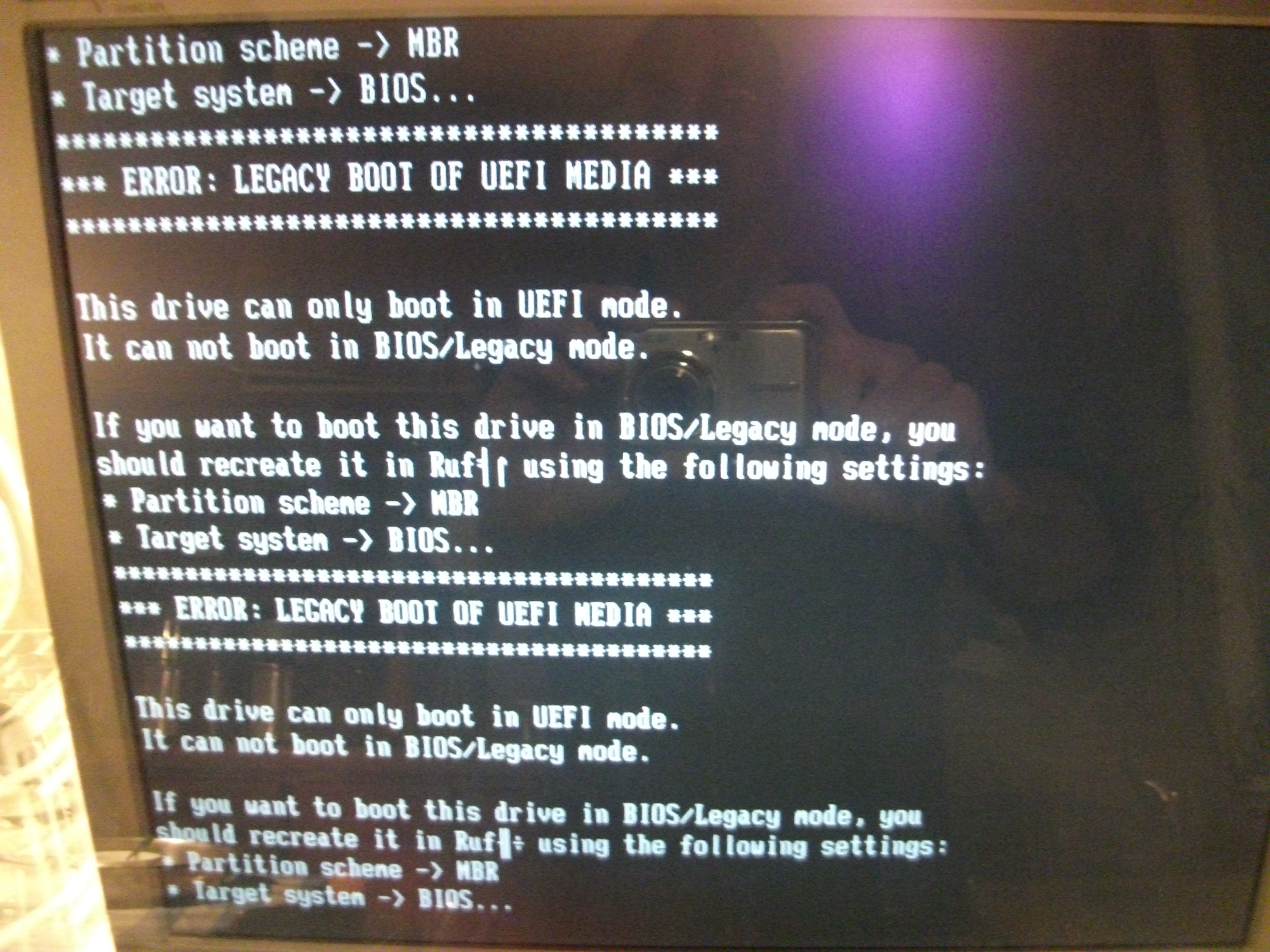 Erstelle jetzt nochmal den Stick mit Rufus, lt. Anleitung meines Eingangspost.