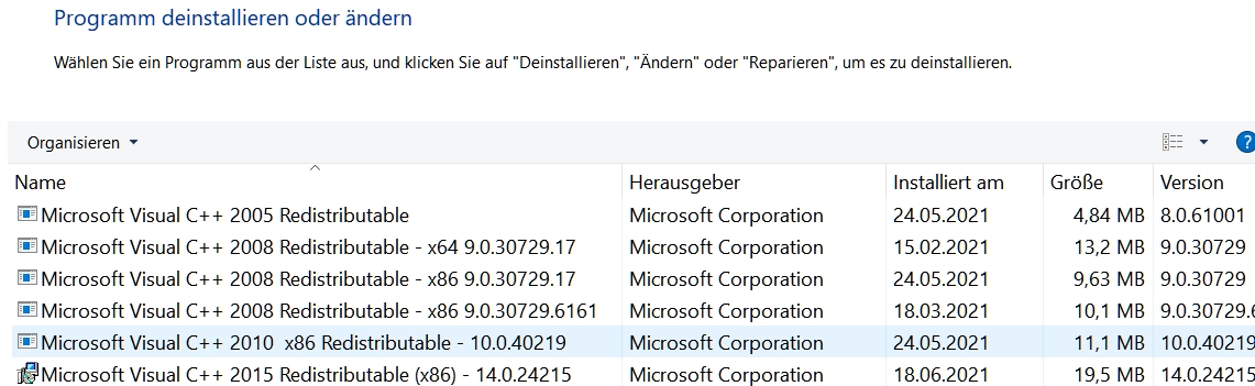 Ach ja?! Hab ich doch in meinem Startthread selber gepostet, nicht gesehen? Wenn ich versuche, das MicroSoft Visual Paket zu installieren, dann bricht die Installation ab, weil erkannt wird, dass das schon auf meinem Rechner läuft...!! Auch der iPhonetreiber (apple mobile device support) ist auf meinem Rechner schon drauf und funktioniert auch, sonst könnte ich ja über den Rechner nicht auf's iPhone zugreifen.... Last but not least ist iTunes auf meinem Rechner "lahmgelegt"....babykanzler schrieb:hi