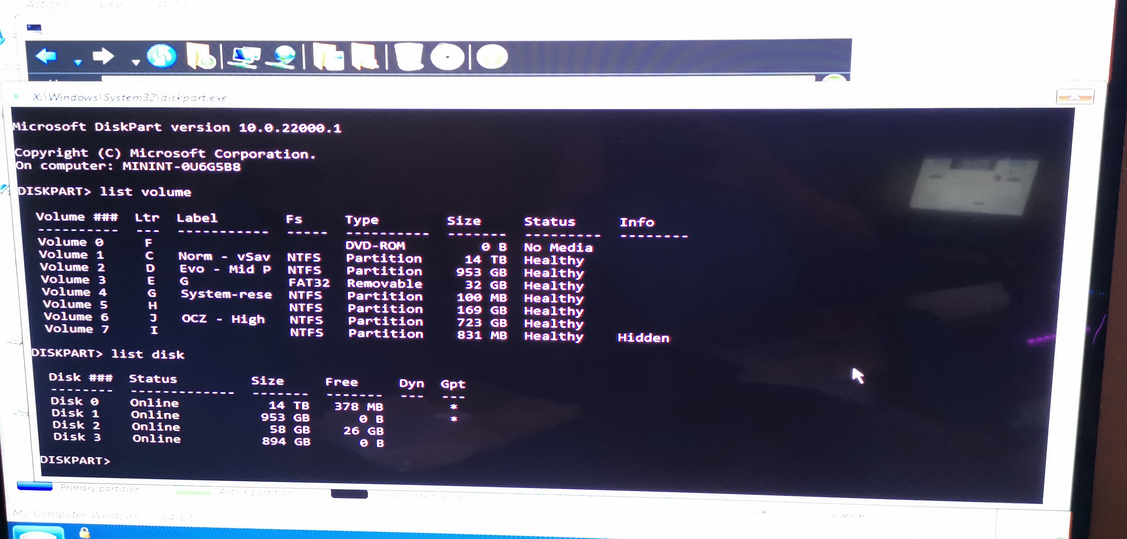Diagnosestart führte auch zu keinem Ergebnis (bis Win-Logo, dann Neustart). Dann eben nochmal bootrec versucht. Bei beiden Befehlen kam nun, dass er nicht gefunden oder falsch geschrieben sei. Fix gegooglet - aha, wohl eine falsche Partition als aktiv gekennzeichnet/bzw. Boot-Part. als inaktiv. Also eben Diskpart über Eingabeauff. ausgeführt.