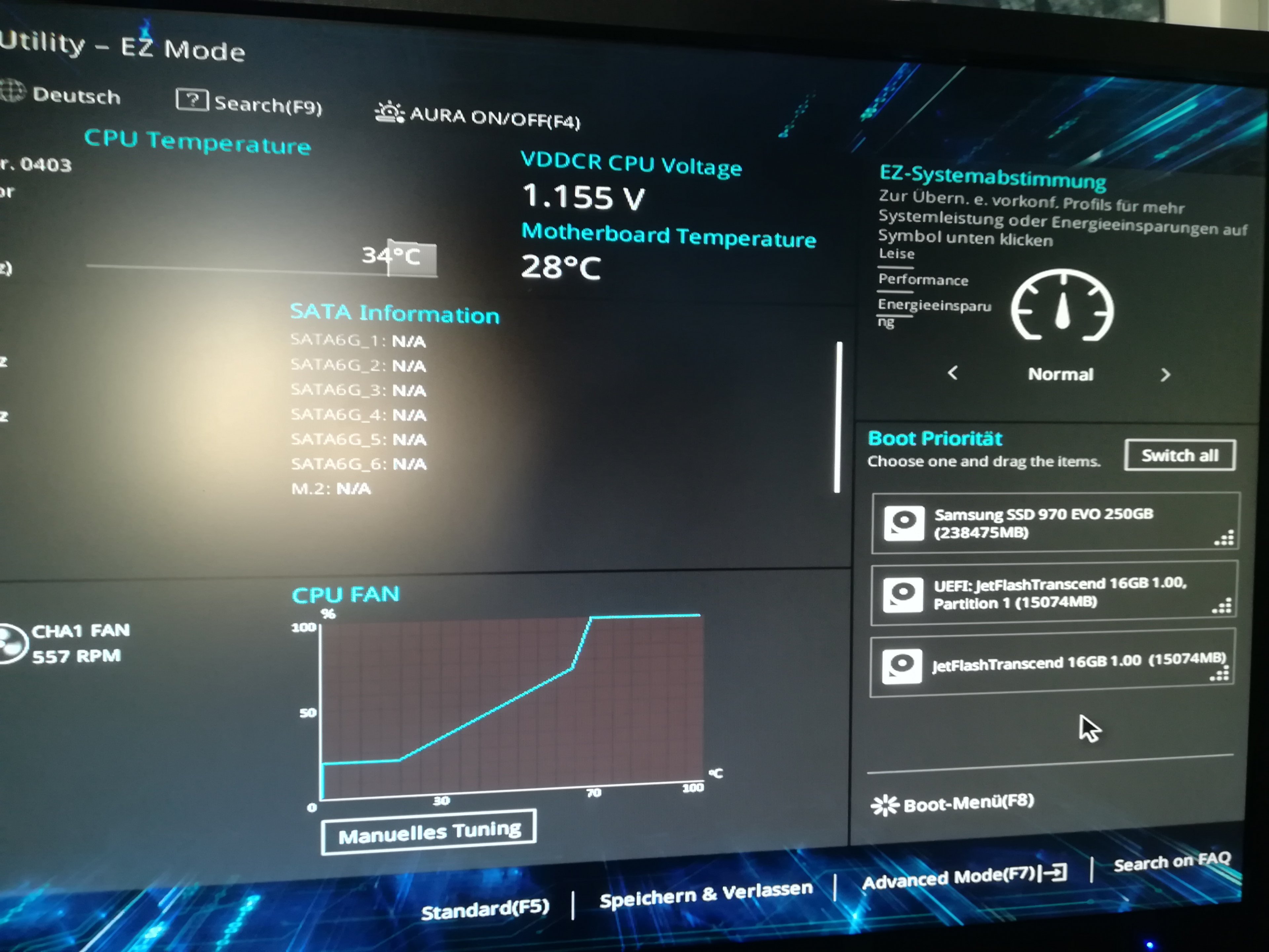 Ich vermute mal, ne 960Evo bekommst auf die Schnelle nicht zum Testen? Die 970Evo wird ja scheinbar gar nicht als UEFI Platte erkannt.