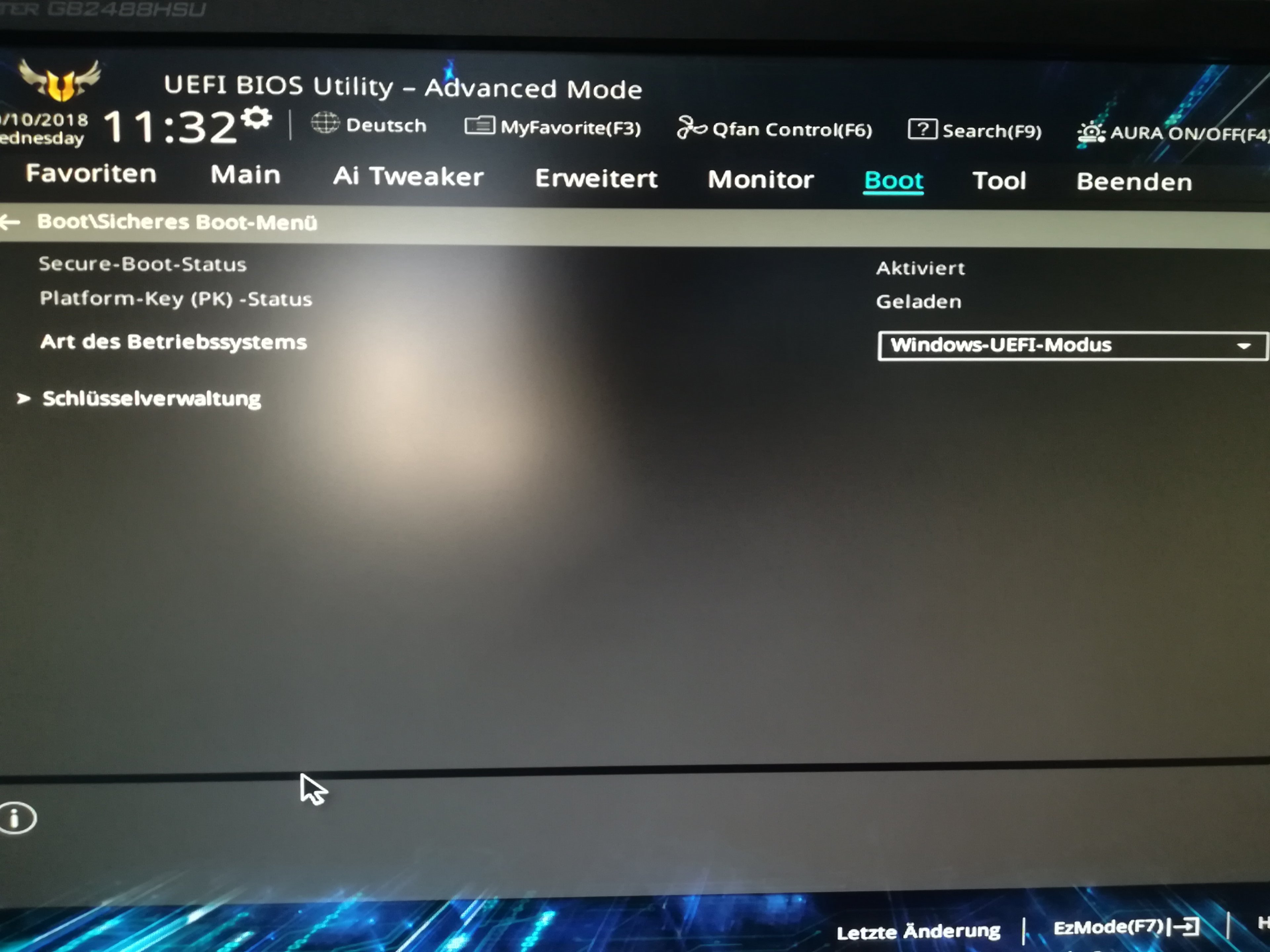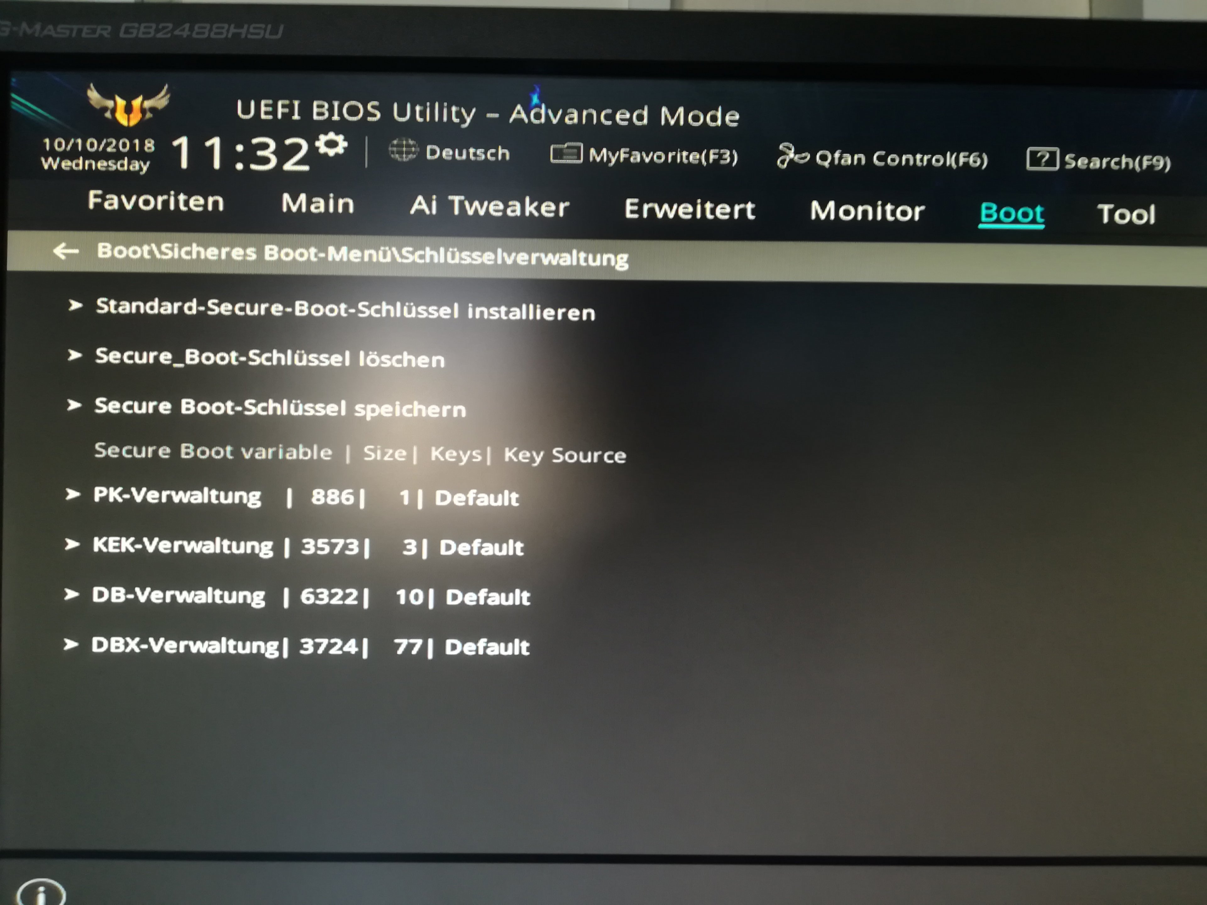 Asus HyperKit Modus aus (falls noch vorhanden). CSM deaktiviert und Secureboot Modus auf Windows UEFI und fertig.