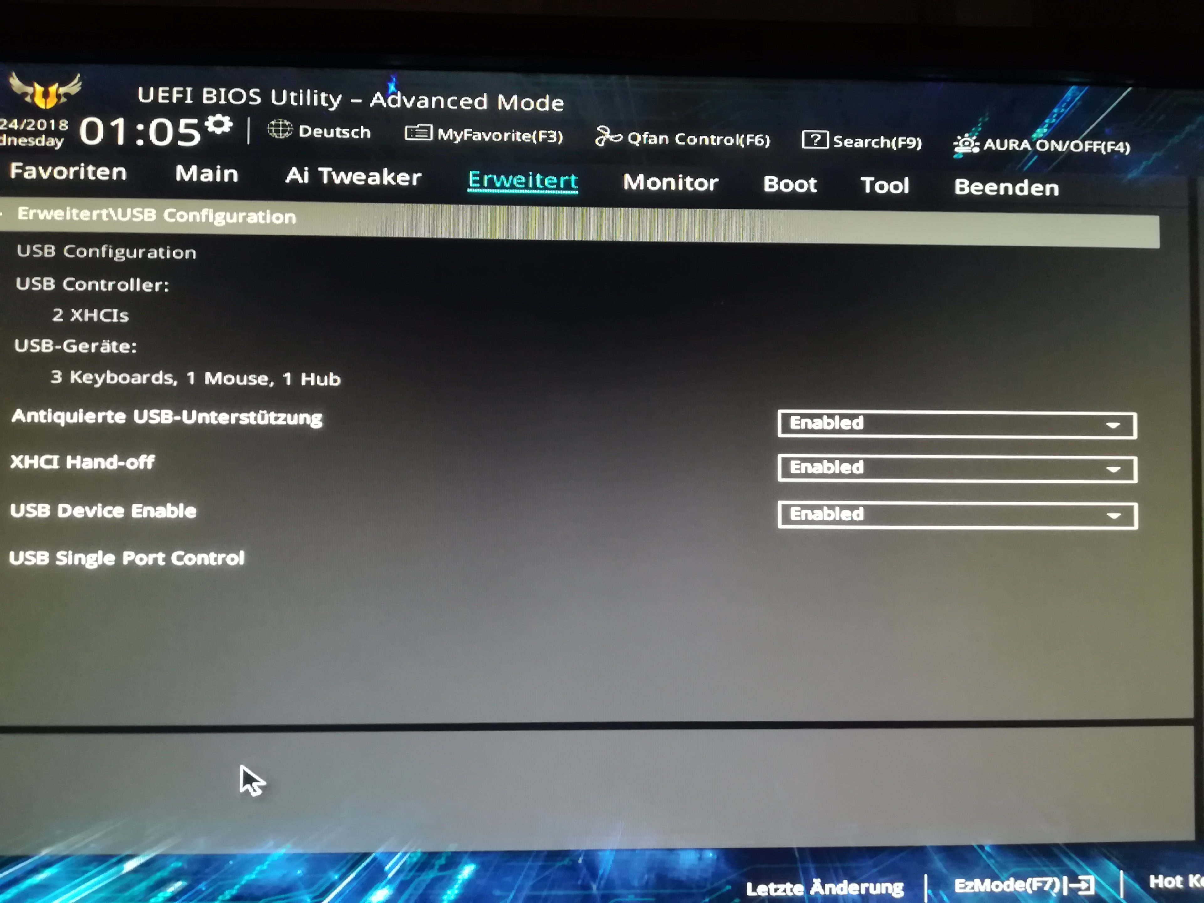 Habe etwas am den Einstellungen gespielt, zB RAM auf 58 Ohm und 2T sowie xhci auf disabled.