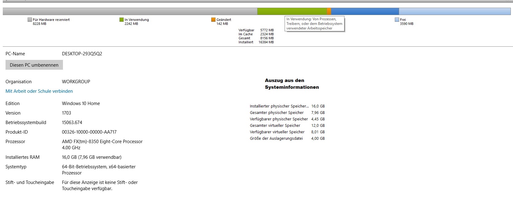 Habe jetzt auch gesehen das im Ressourcenmanager über 8GB für Hardware reserviert sind, was mir nicht ganz geheuer vorkommt. Also bitte ich wirklich verzweifelt um Hilfe.