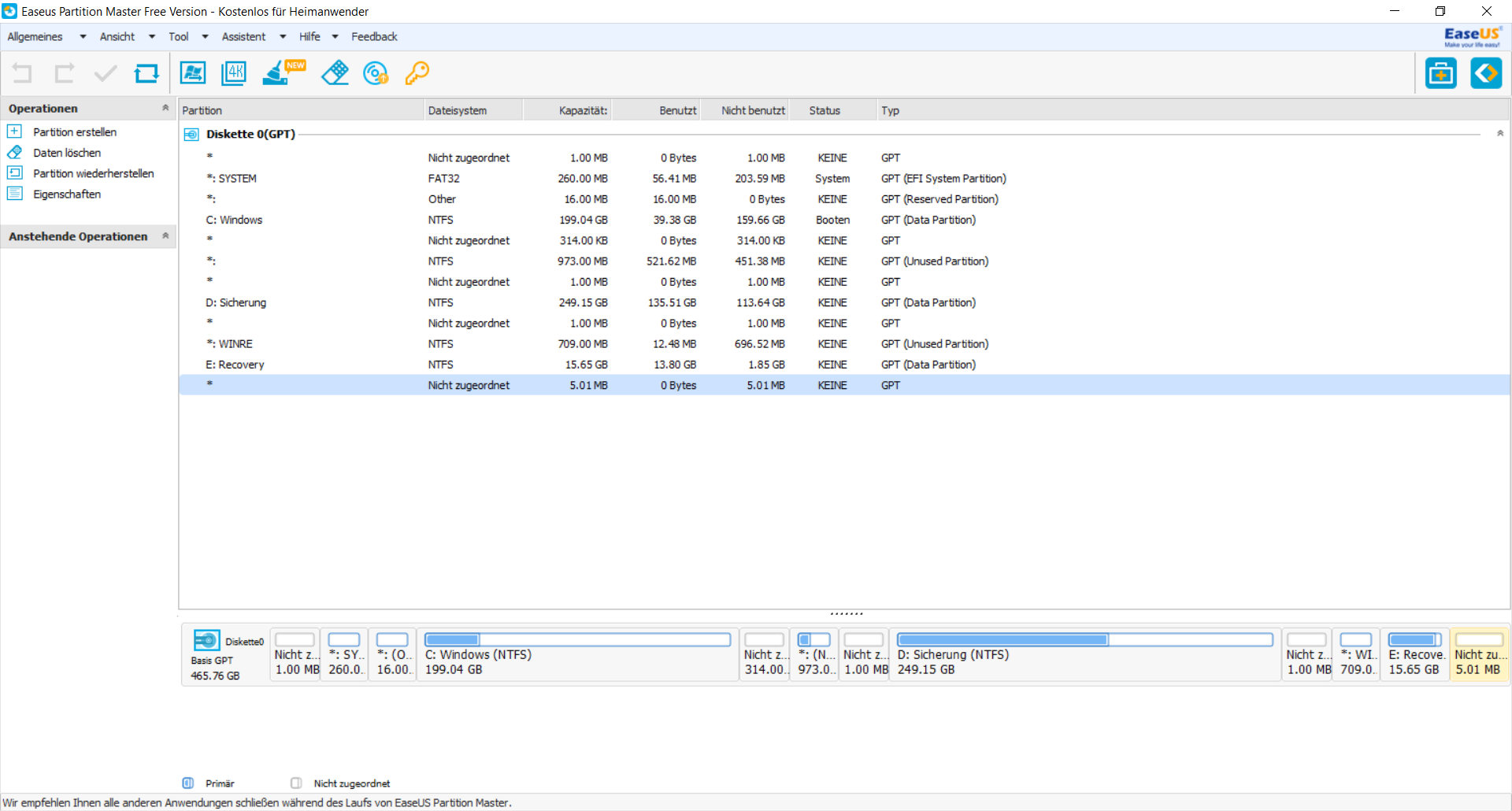 Nachdem ich C etwas abzweigte unter Windows Verwaltung, lag der freie Speicherplatz seitlich. Nun sollte D grösser werden damit. Problem ist, D lässt sich nicht vergrössern weil zwischen C und D eine ausgeblendete System Partition liegt.
