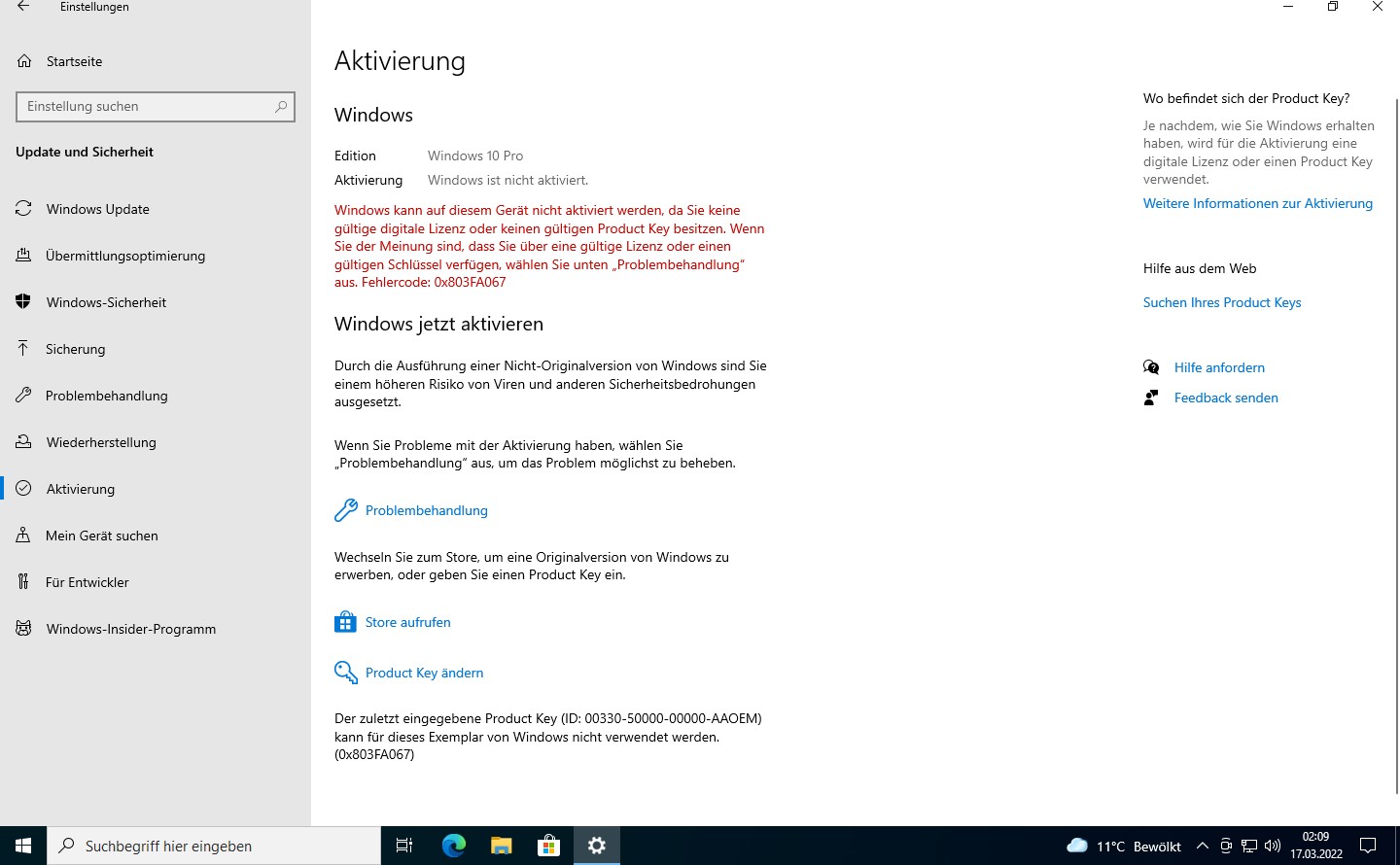 Jetzt sieht das so aus nach der Eingabe von dem Win7 Pro OA Key... (siehe Anhang)