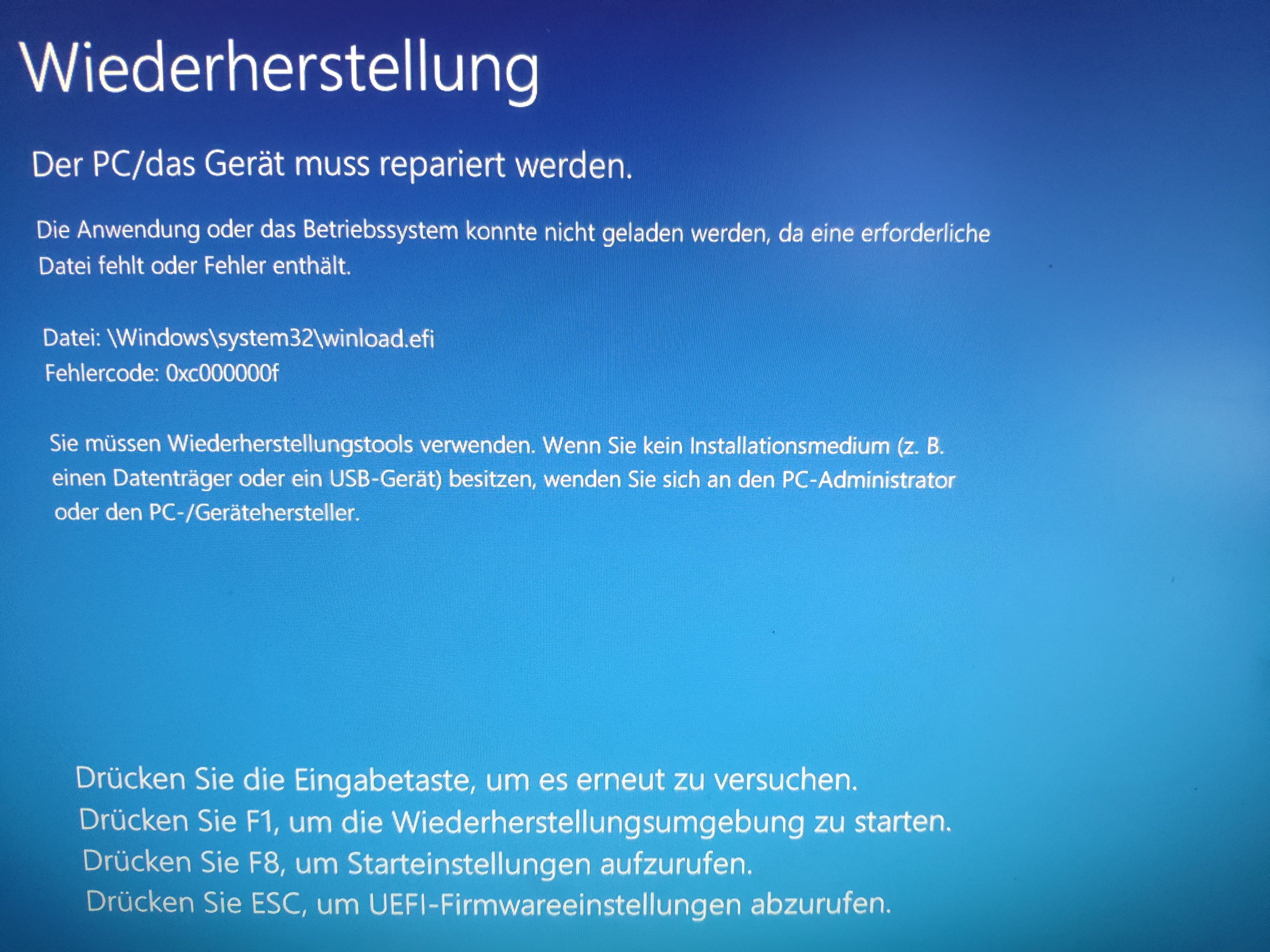 Darauf hin wollte ich mit einem Win10 bootable Stick die Datei reparieren aber der PC friert beim booten von dem Stick ein. Den Stick habe ich an einem anderen PC getestet, er funktioniert dort.