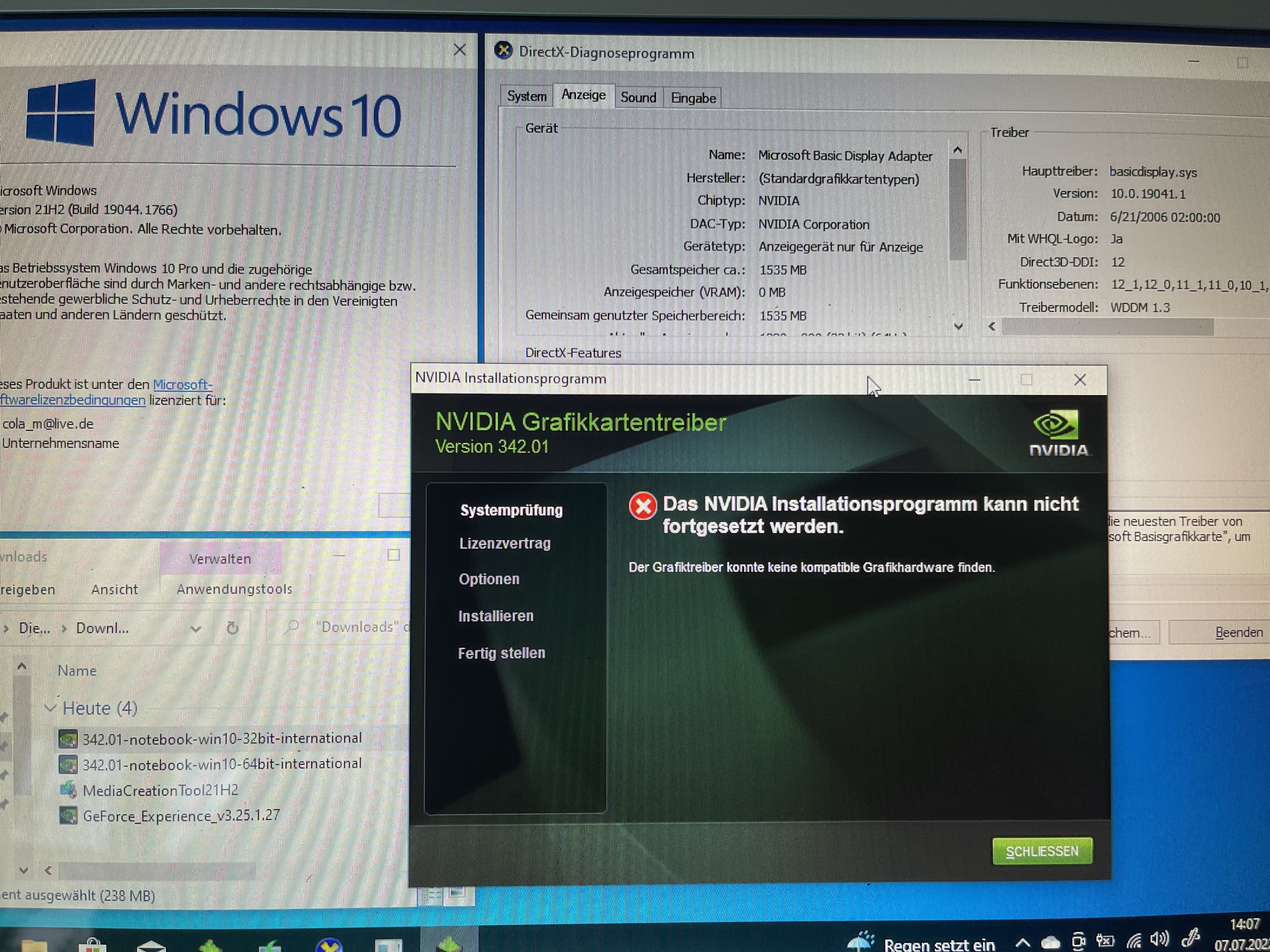 Ich versuche über die Nvidia Download Seite den Treiber für die o.g. Karte für win10 32bit zu I Stalllaterne mit dem Fehler siehe Screenshot. Habe mit dem Tool uninstall display driver zuvor alles sauber gelöscht und trotzdem immer derselbe Fehler