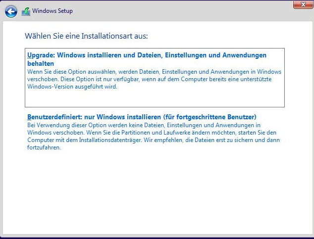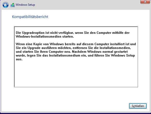 behalten wählen. Booten von Installationsmedium und Inplace Upgrade geht so nicht.