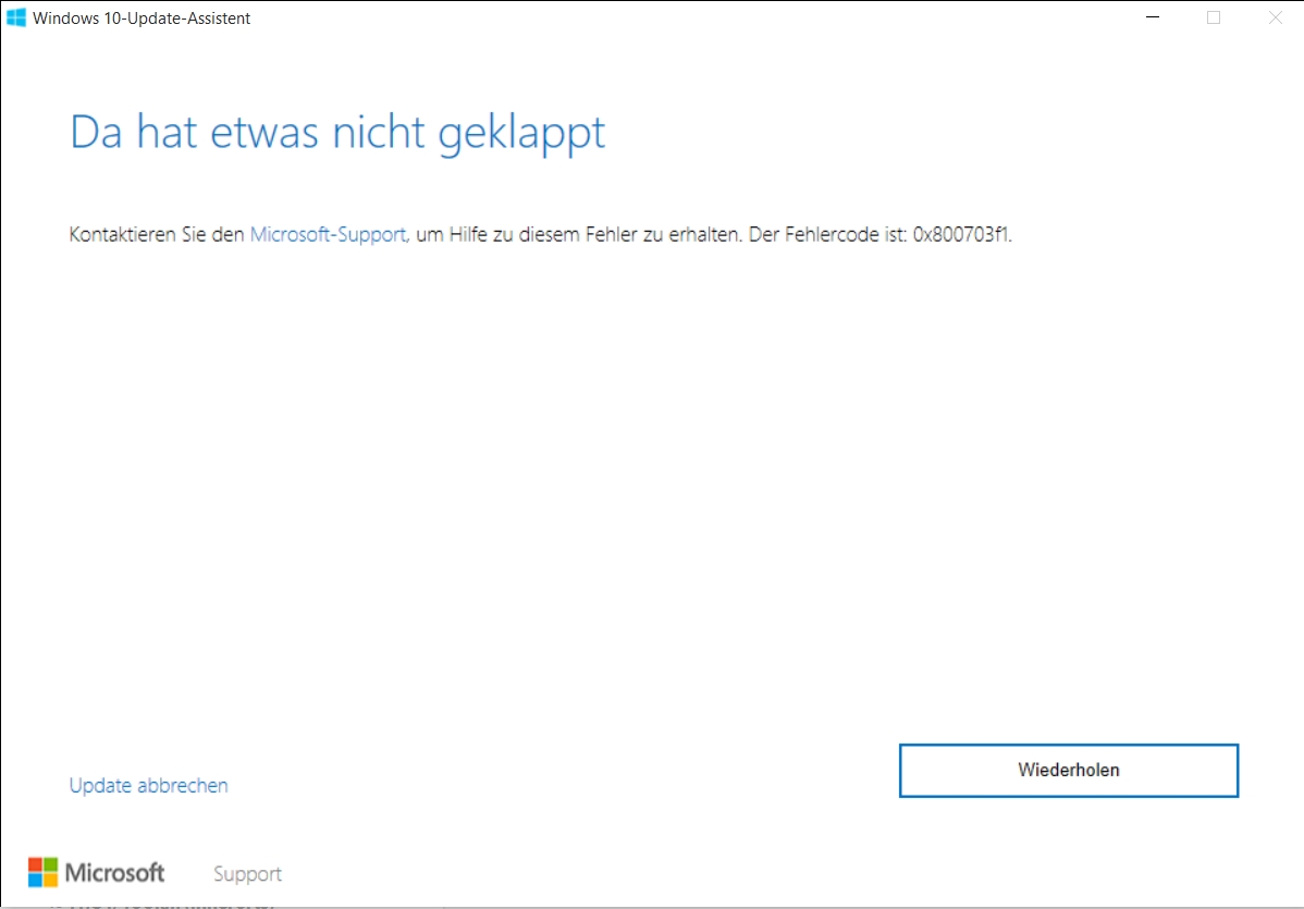 Es erscheint Fehlermeldung mit Fehler-Code 0x800703f1