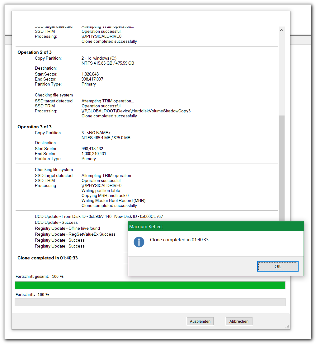 möchte das komplette Win10-System auf der hier sichtbaren SSD auf eine neue SSD klonen: