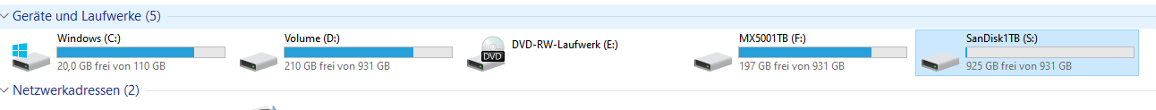 Leider habe ich festgestellt das Win10 die SSD nach einem Restart immer wieder "vergisst" und nicht anzeigt. Dabei geht auch der Laufwerksbuchstabe in der Datenträgerverwaltung verloren. Nachdem man dies manuell eingestellt hat, nach jedem Restart, kann mit der Platte gearbeitet werden und Daten werden erfolgreich kopiert/verschoben.